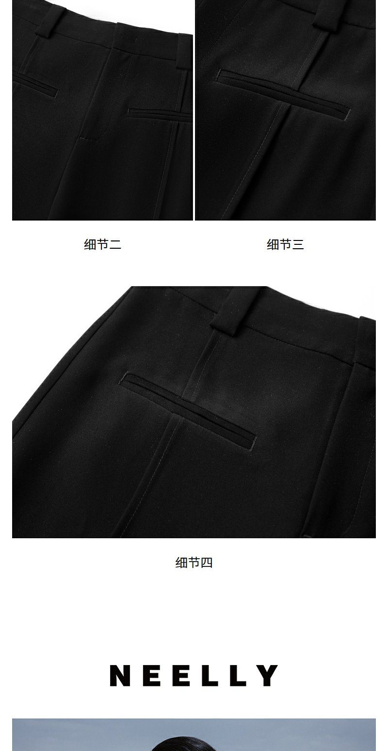 NEELLY纳俪商场同款春新款深色直筒休闲裤女自然腰显瘦百搭长裤N25074H04564