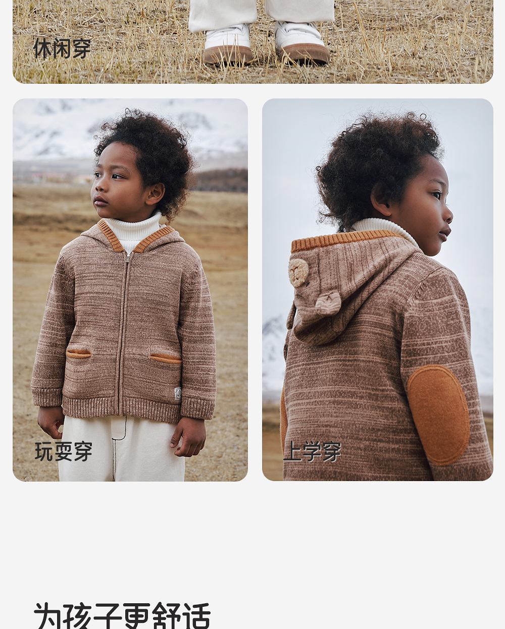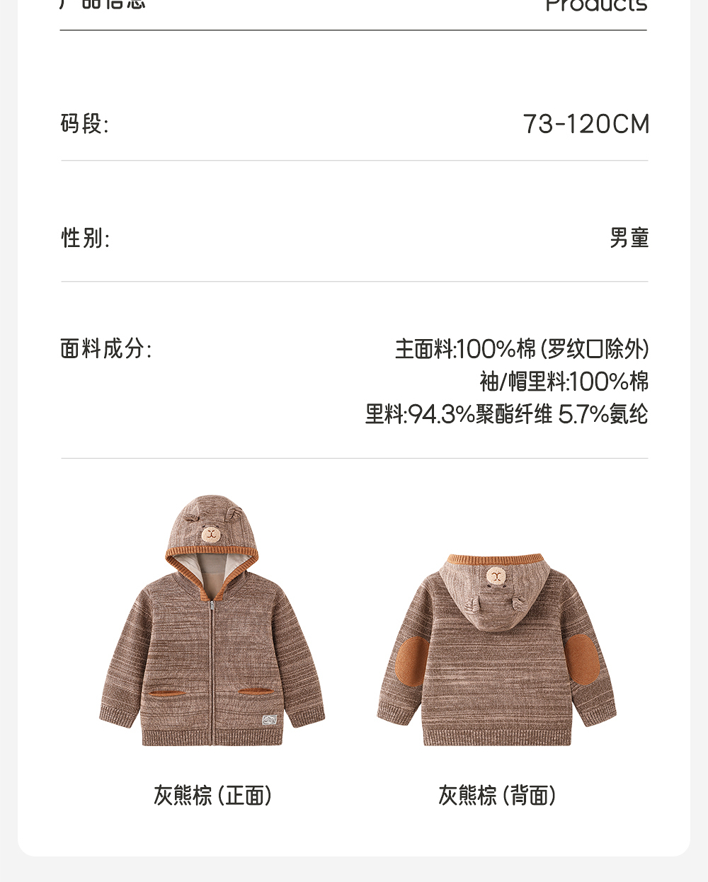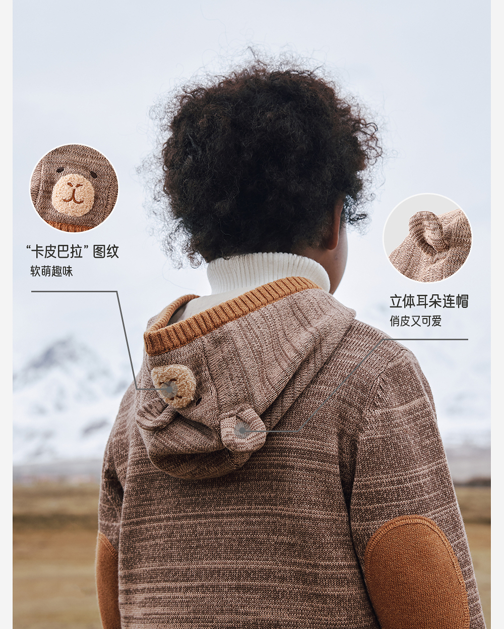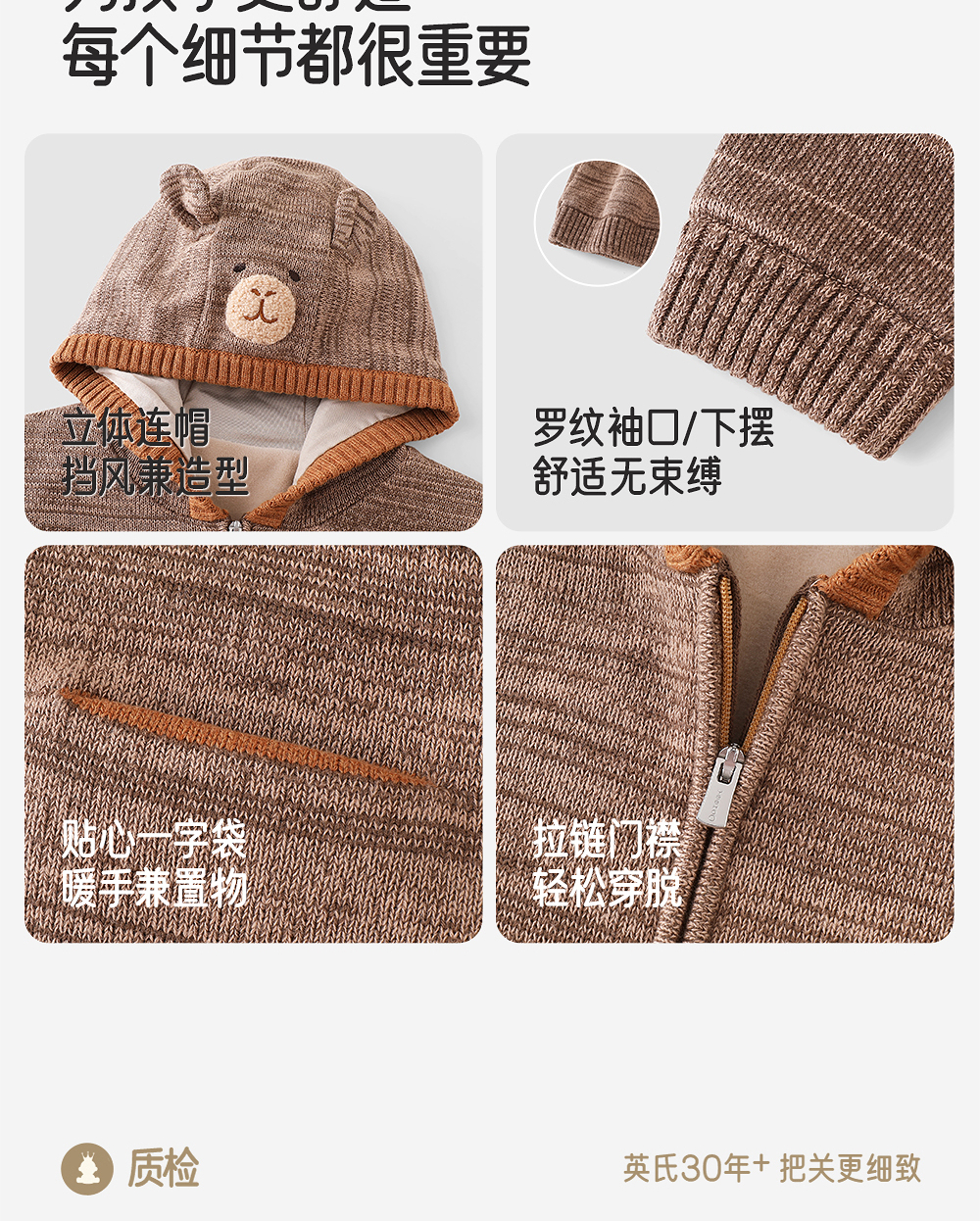 英氏儿童连帽毛衣小熊男童可爱冬季舒适新款针织外套YRWWJ4R025A