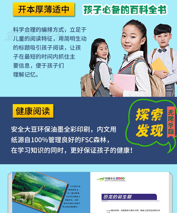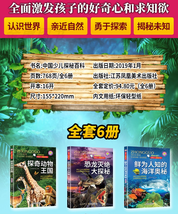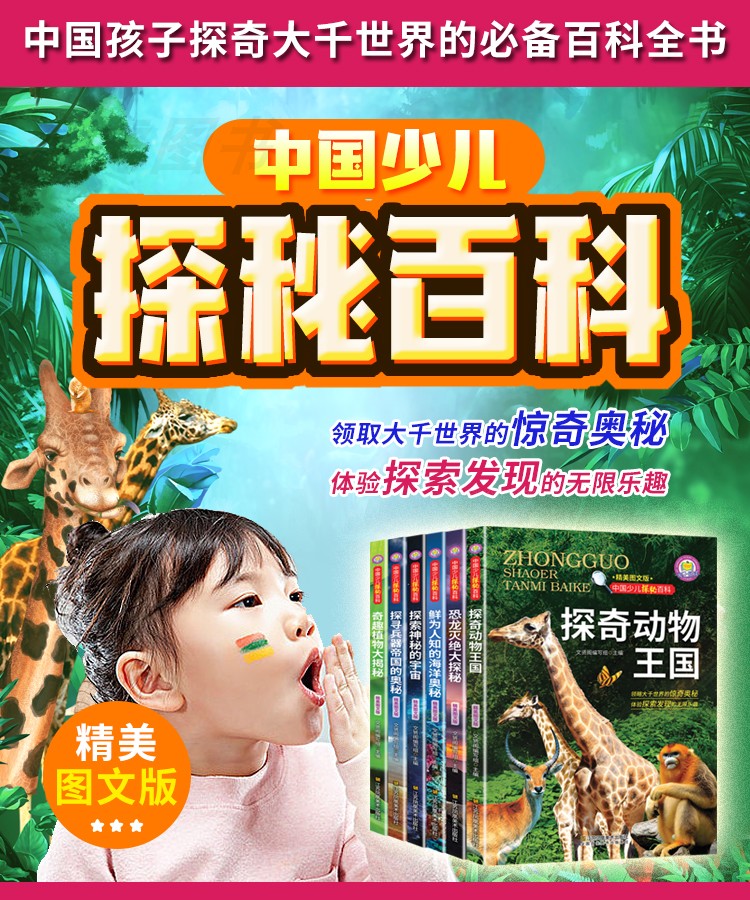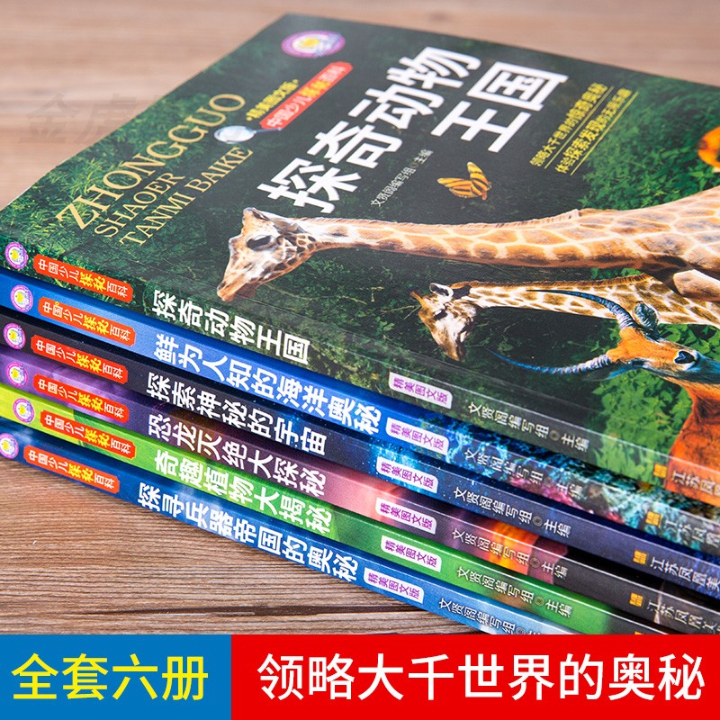 中国少儿探秘百科全套6册探奇动物王国海洋奥秘恐龙灭绝兵器奇趣植物大揭秘中国儿童的十万个为什么小学版百科全书
