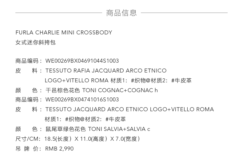 FURLA芙拉CHARLIE 迷你斜挎包单肩包