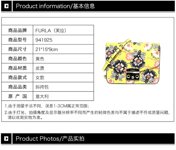 【香港直邮】Furla 芙拉 女士黄色斜挎包 941925