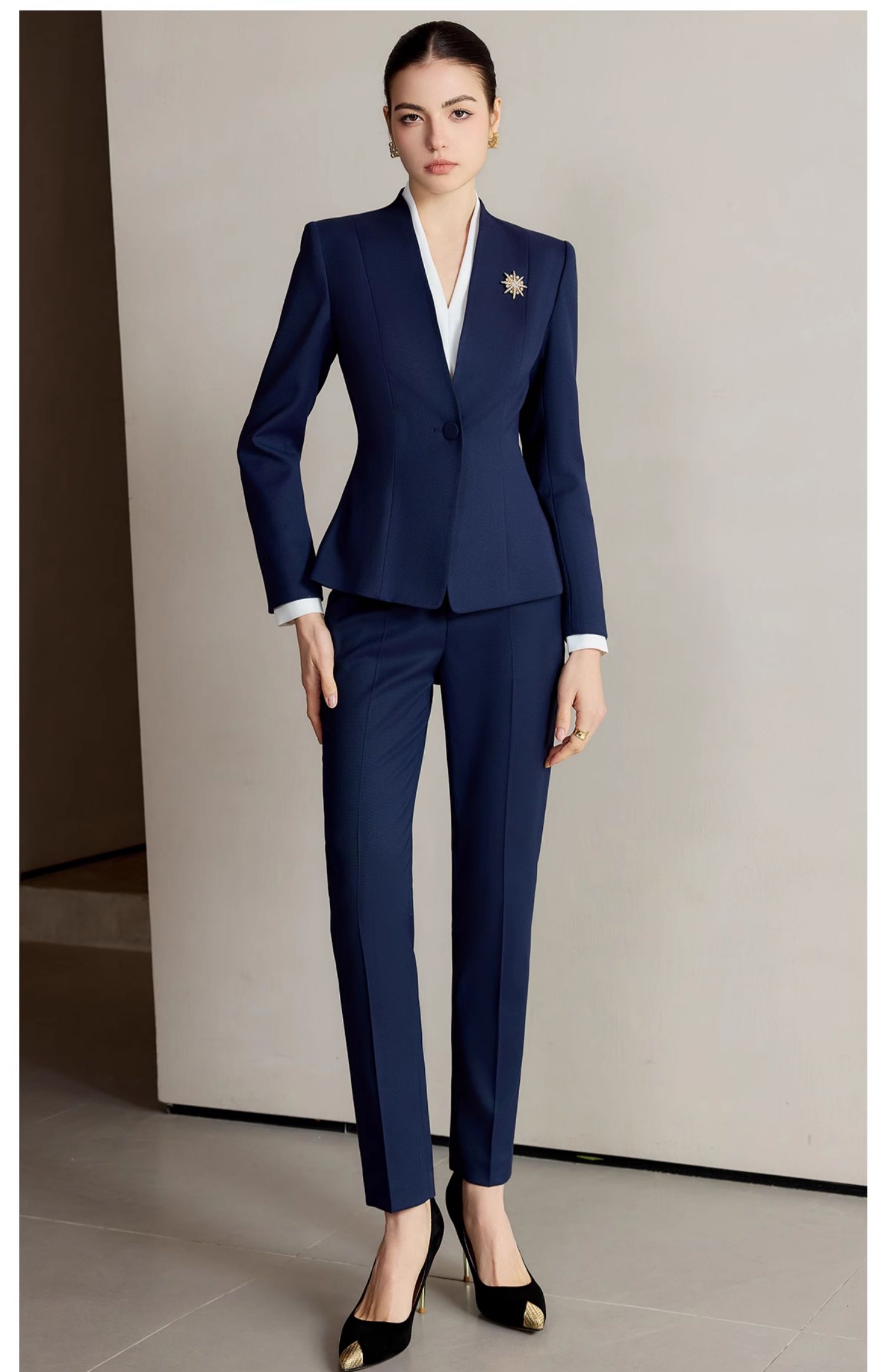 IWY/藏青色西装套装女气质干练公务员面试职业装CP2223+B502