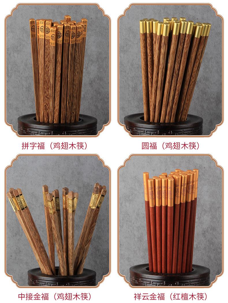 小额批发合金筷金属头鸡翅木筷子红木筷实木筷礼品筷国风家用筷子