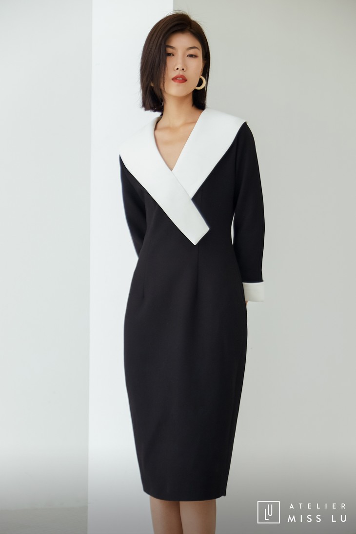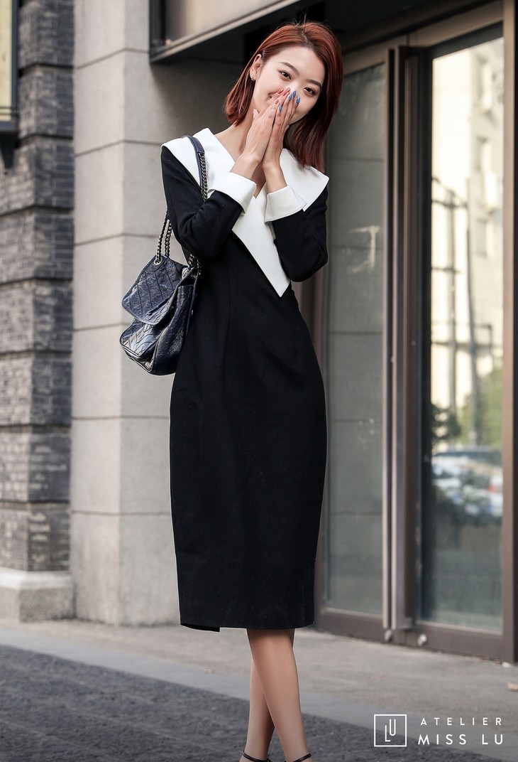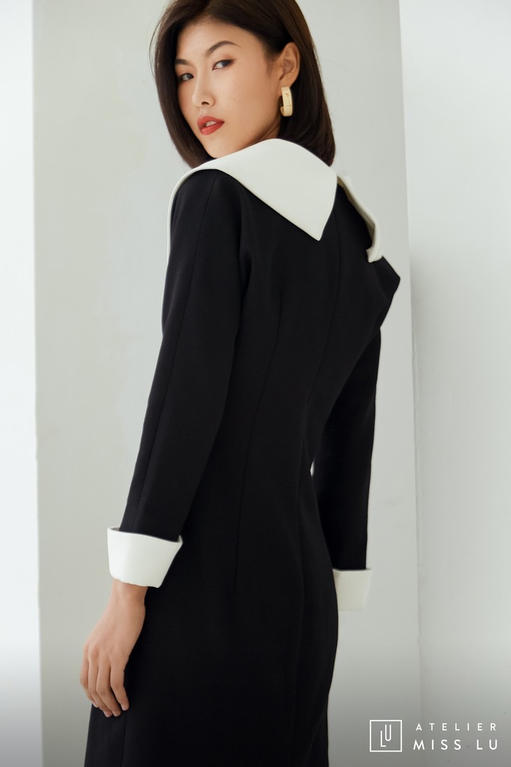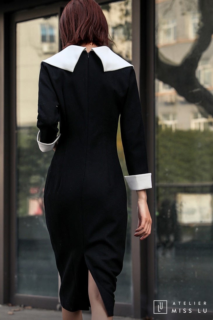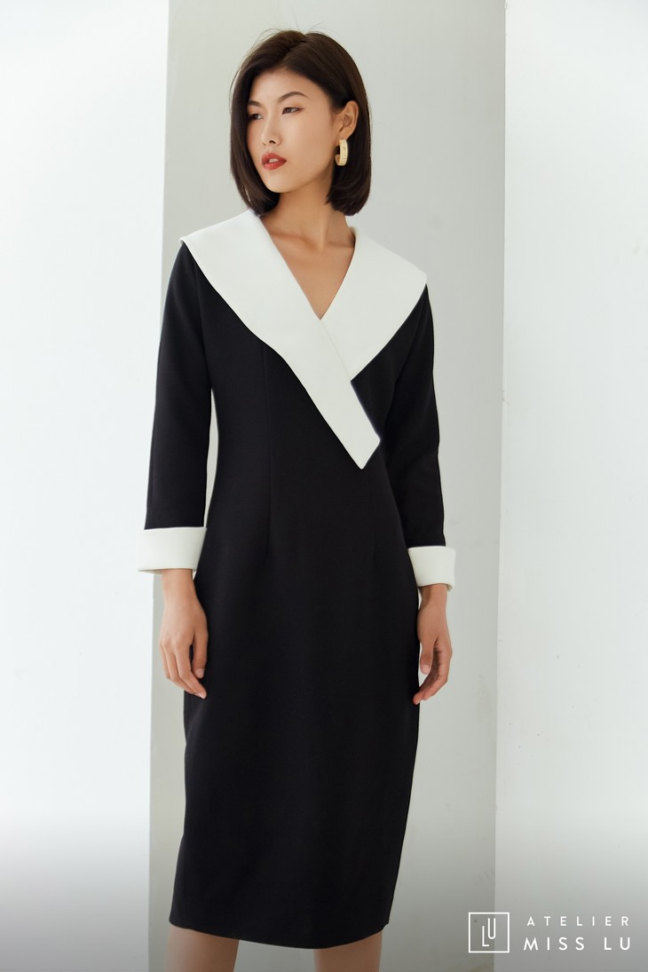 AtelierMissLu / Odelette-黑白翻领复古连身裙