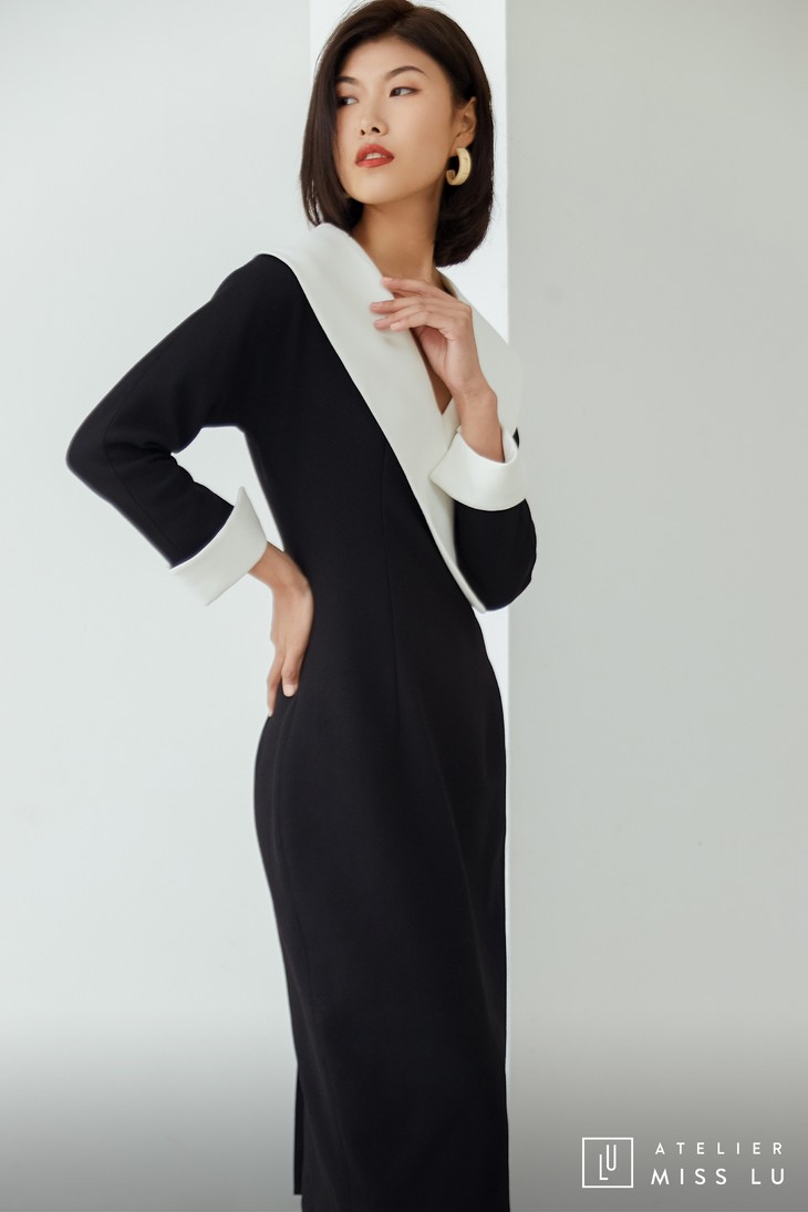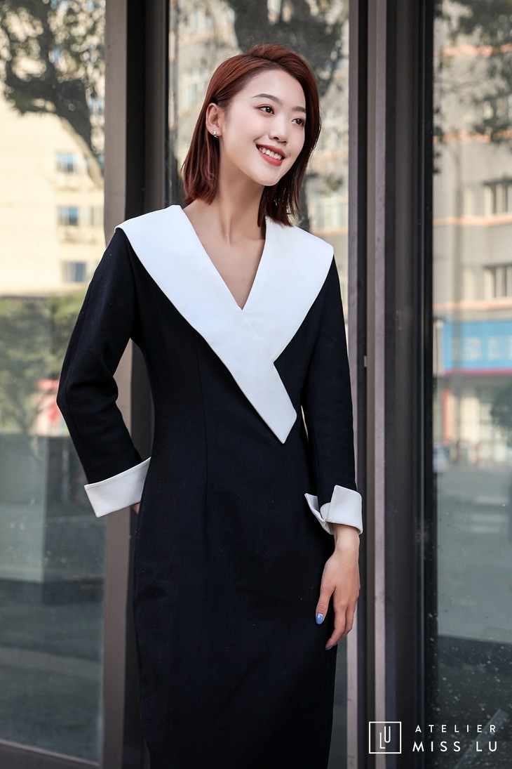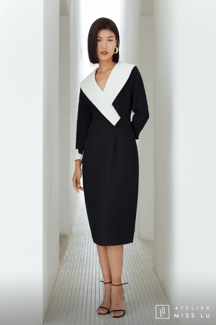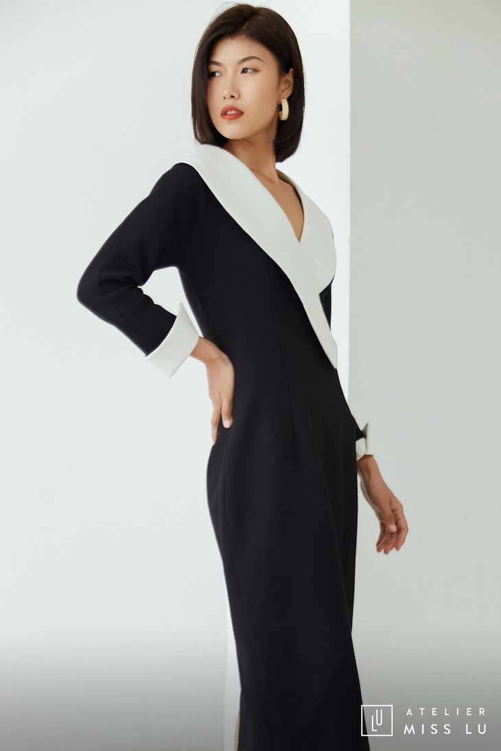 AtelierMissLu / Odelette-黑白翻领复古连身裙