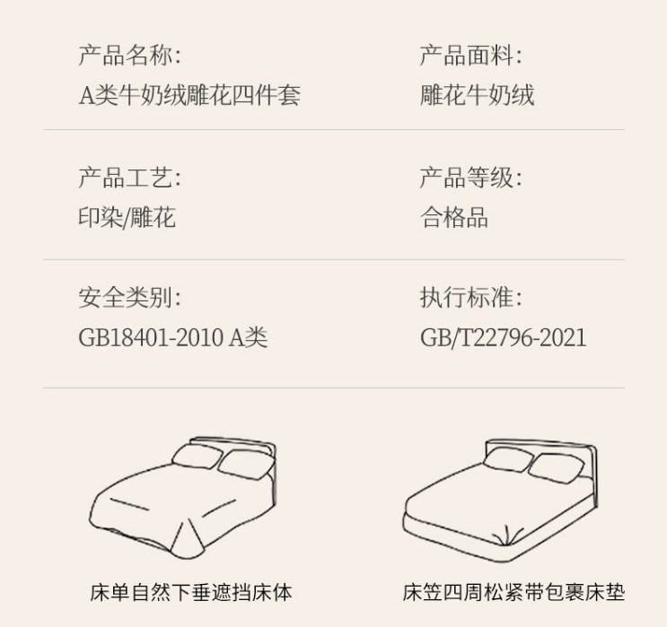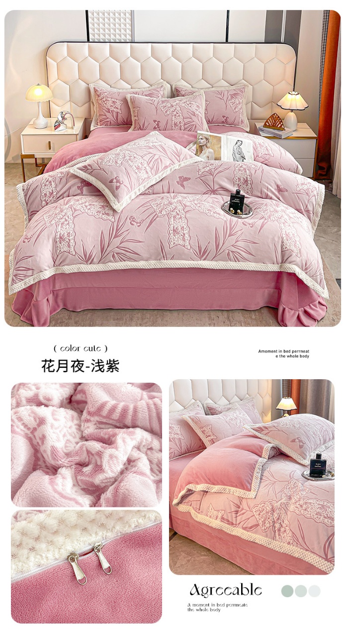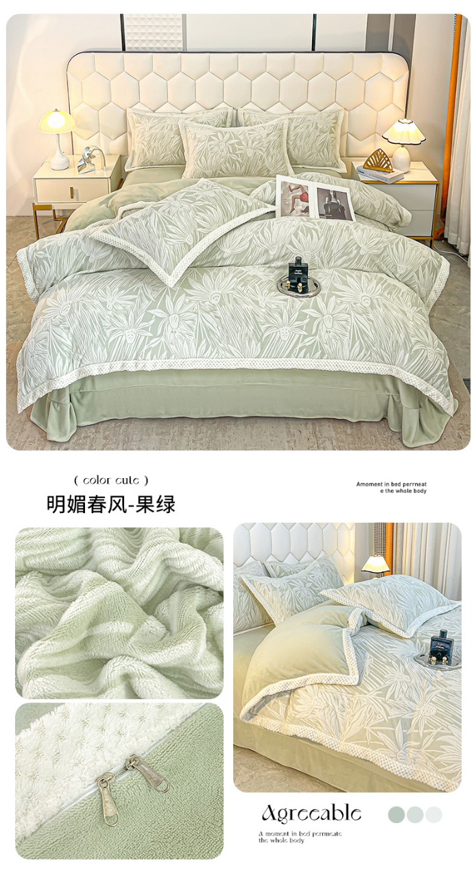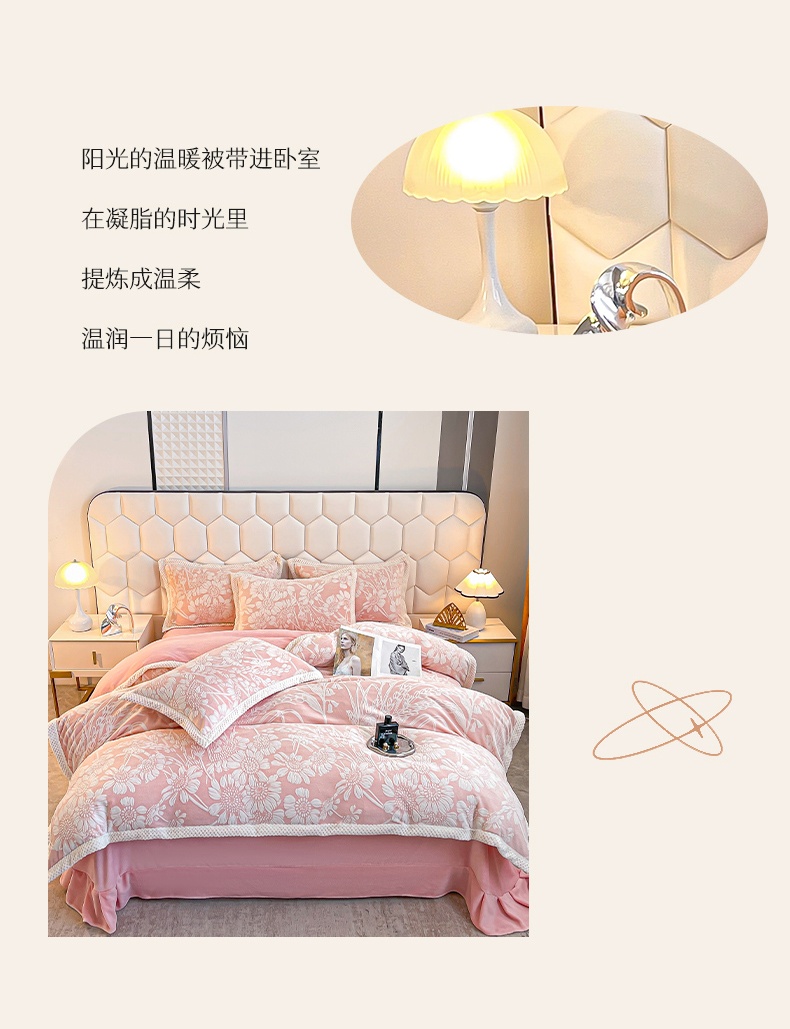 高克重雕花牛奶绒简约ins奶油风四件套 柔滑-贴肤-透气-细腻