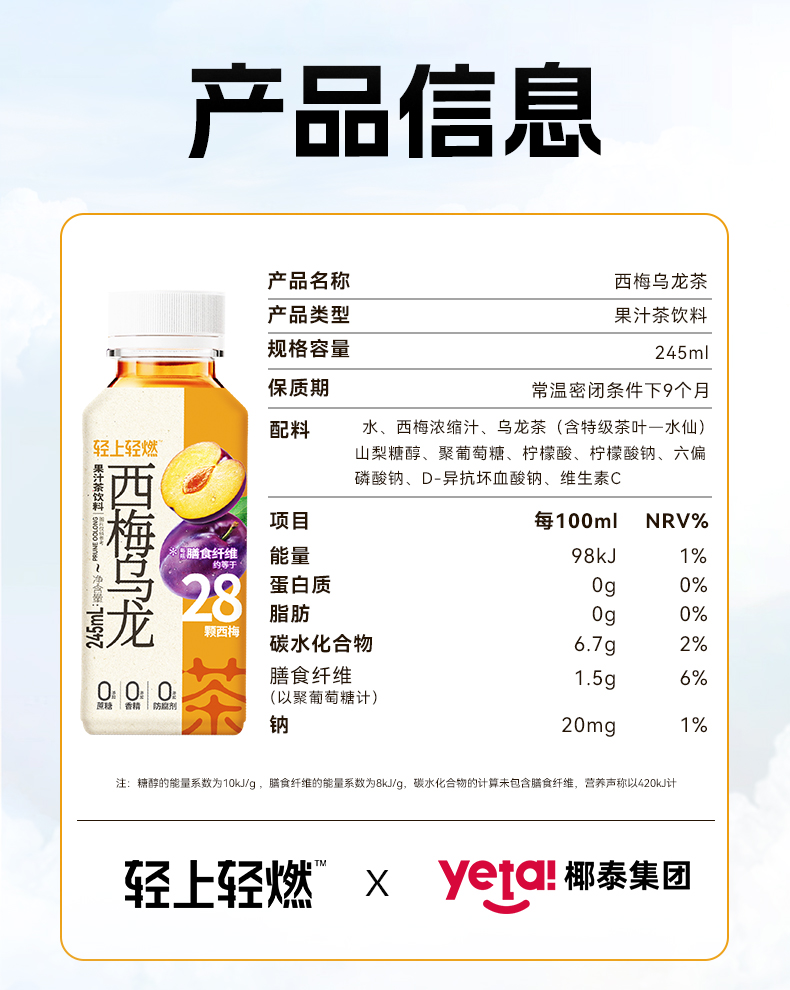 轻上西梅乌龙茶 245ml*10瓶