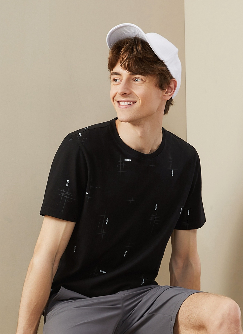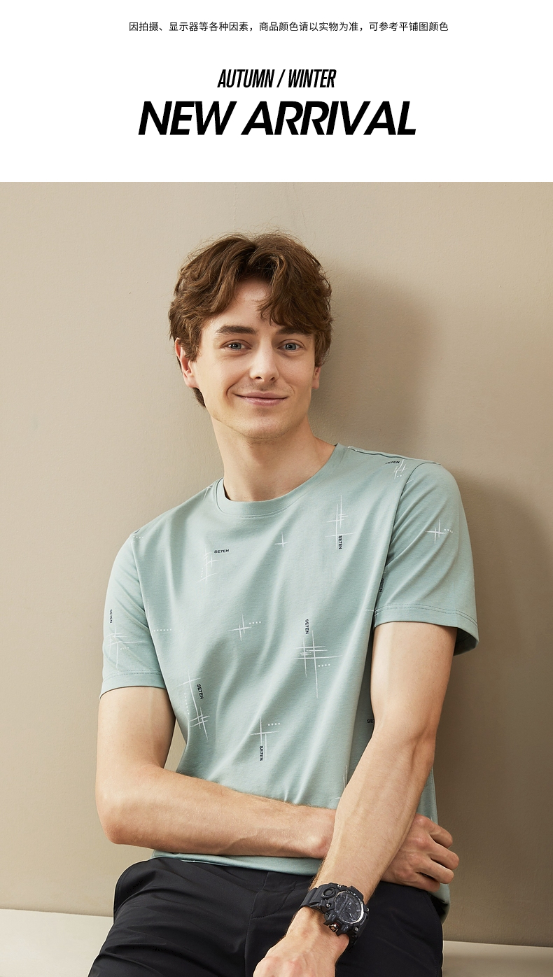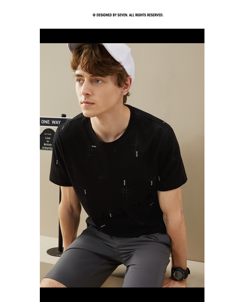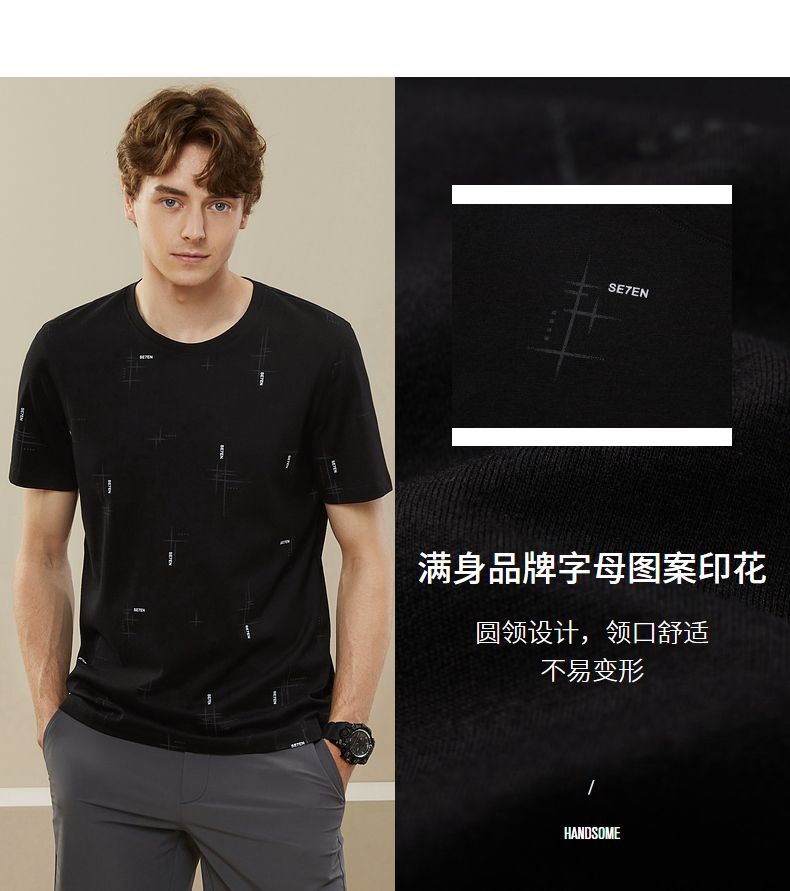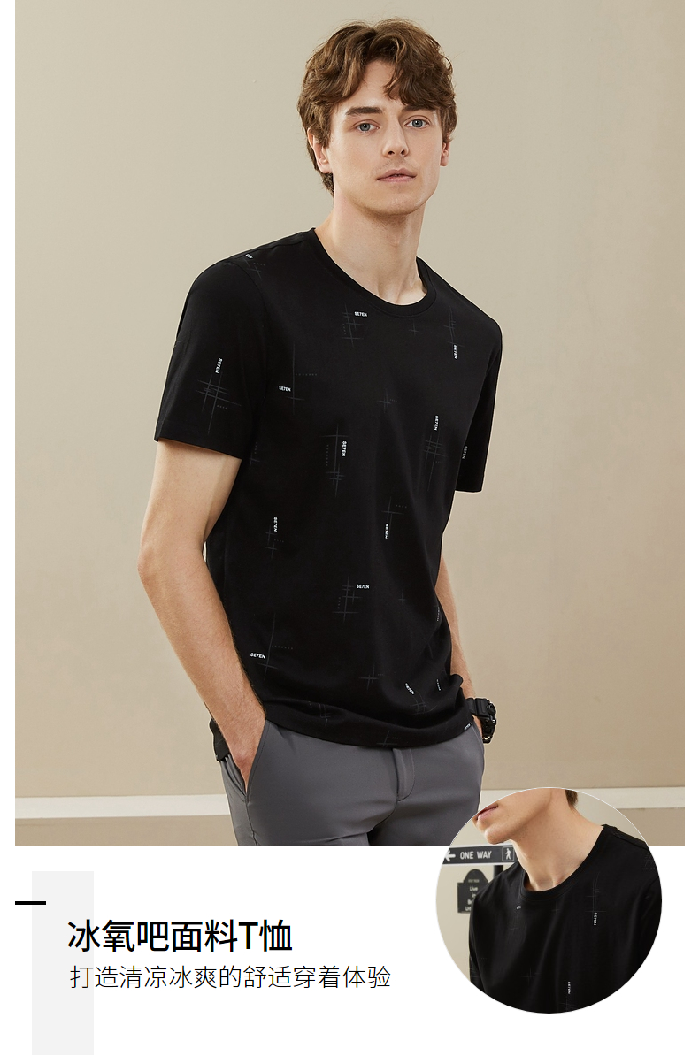 【冰氧吧】柒牌男装短袖T恤男夏季薄款时尚字母满印休闲圆领上衣 126T70040
