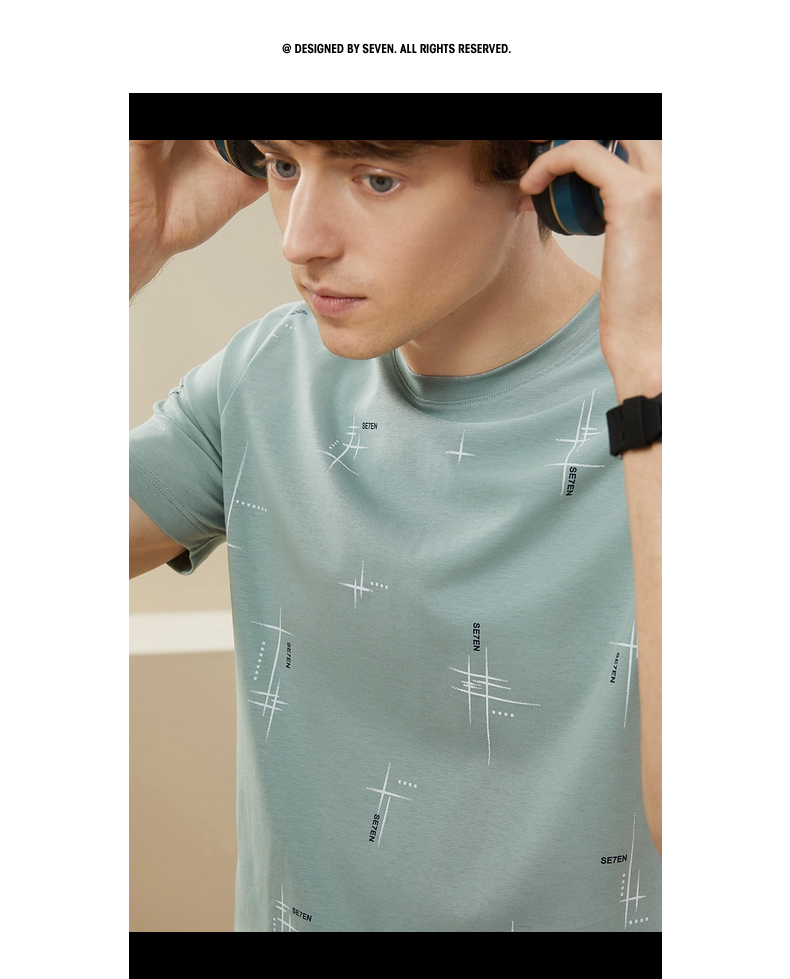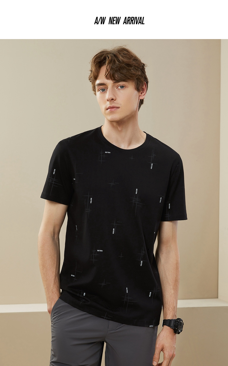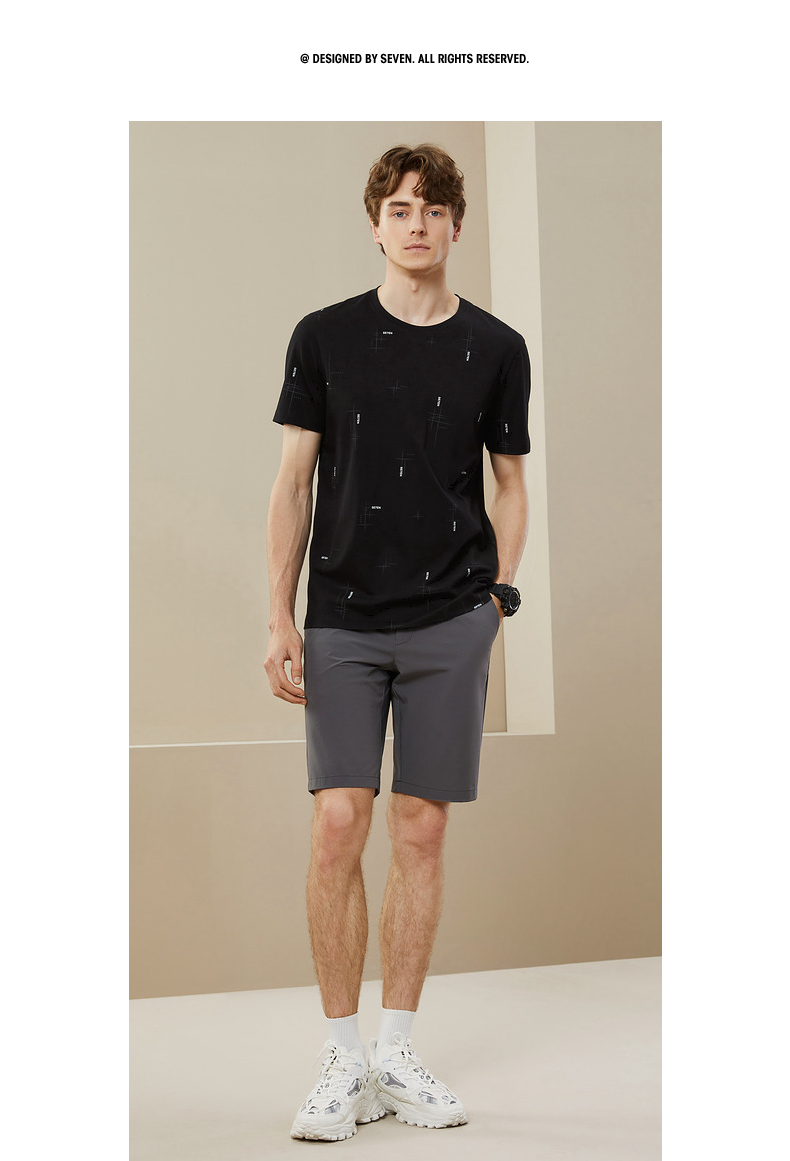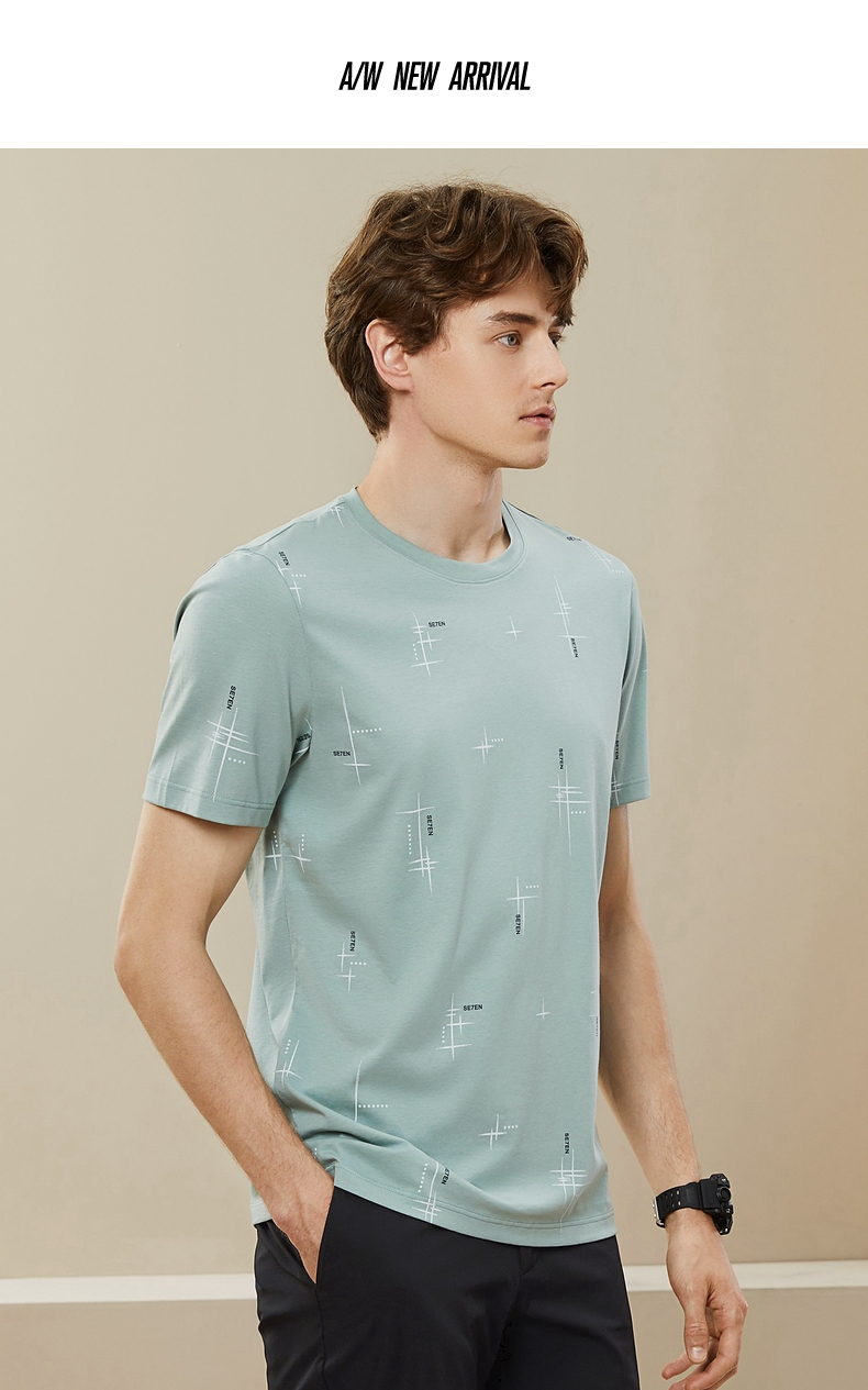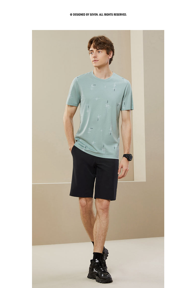 【冰氧吧】柒牌男装短袖T恤男夏季薄款时尚字母满印休闲圆领上衣 126T70040