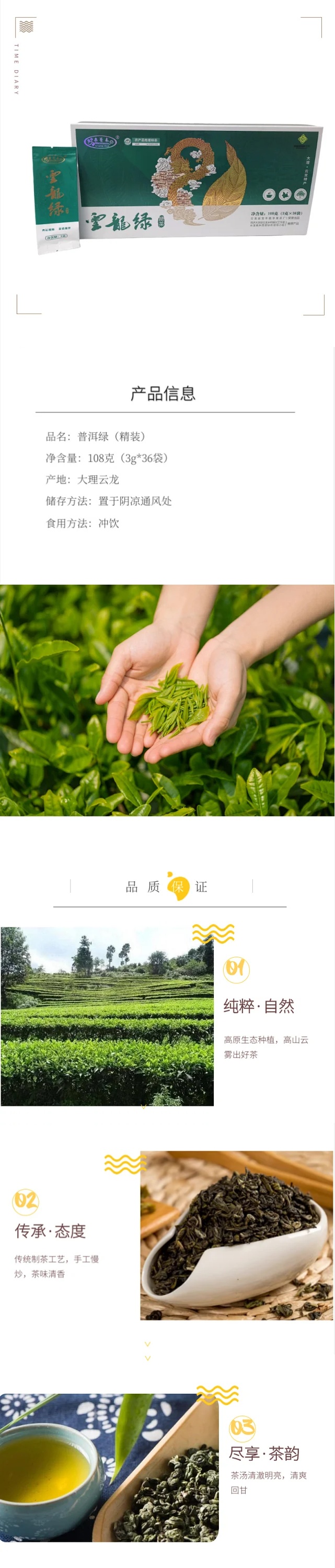 云南大理云龙绿(绿茶)108克 (3克*36袋) 商品图2