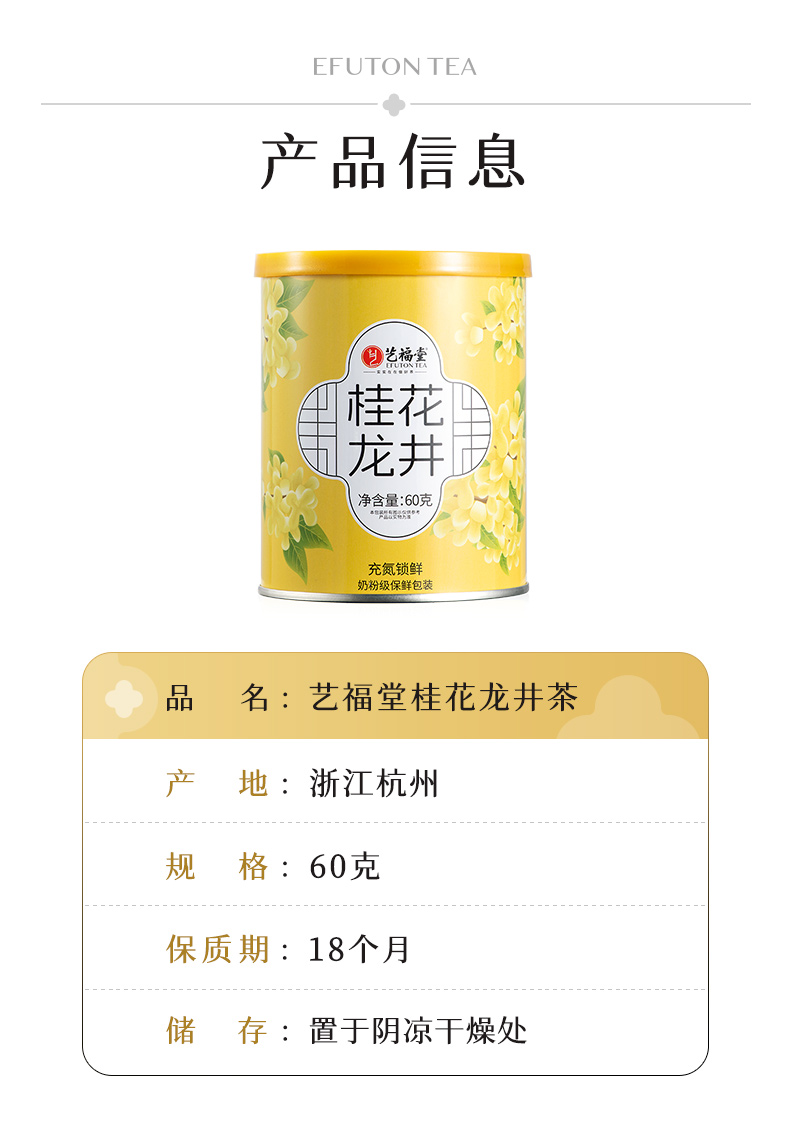 艺福堂精选桂花龙井茶60g/罐(氮气罐)