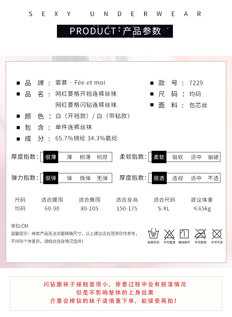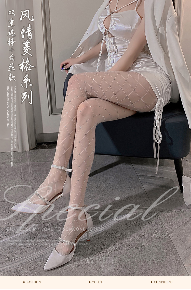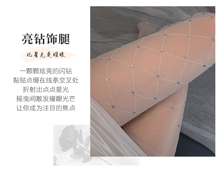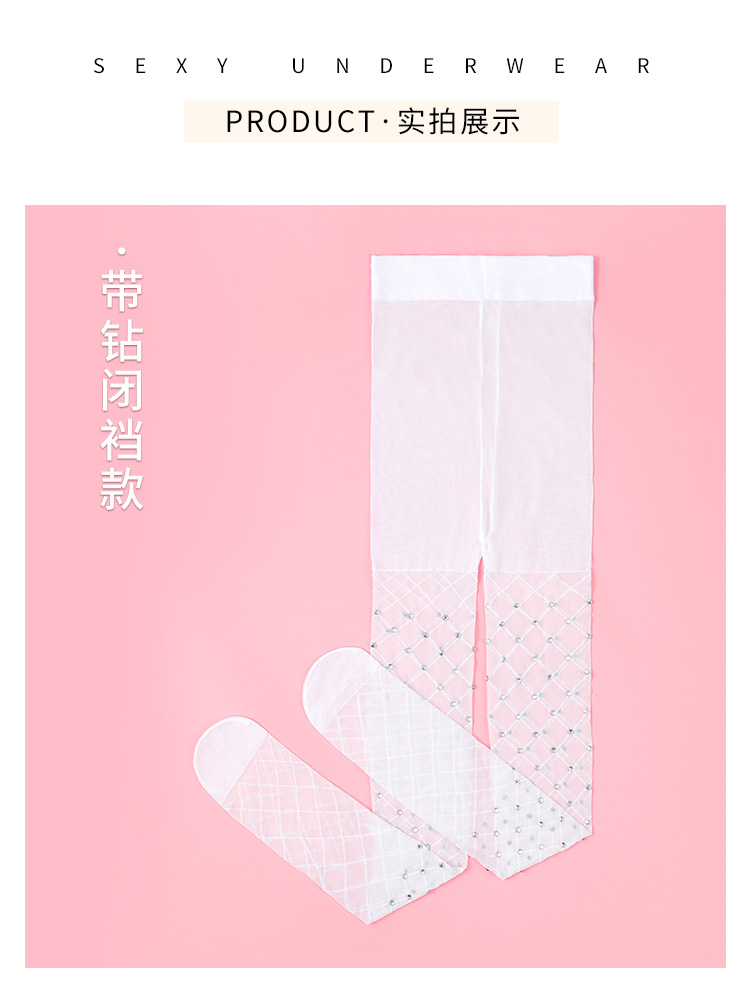 霏慕网红菱格开裆/闭档闪钻连裤袜7229 情趣内衣白丝性感潮流ins风纯欲丝袜透视诱惑情趣丝袜