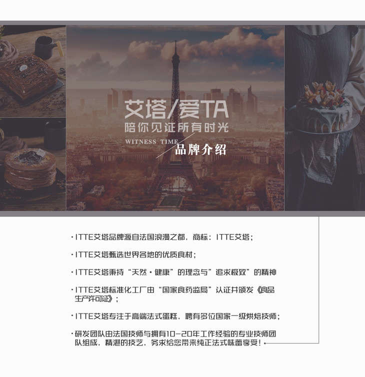 ITTE 艾塔品牌源自法国浪漫之都,商标:ITTE艾塔; ITTE 艾塔甄选世界各地的顶级食材; ITTE 艾塔秉持“天然•健康”的理念与”追求极致”的精神; ITTE 艾塔标准化工厂由“国家食药监