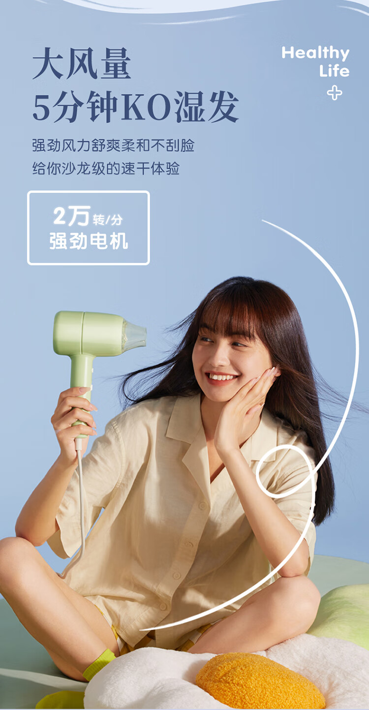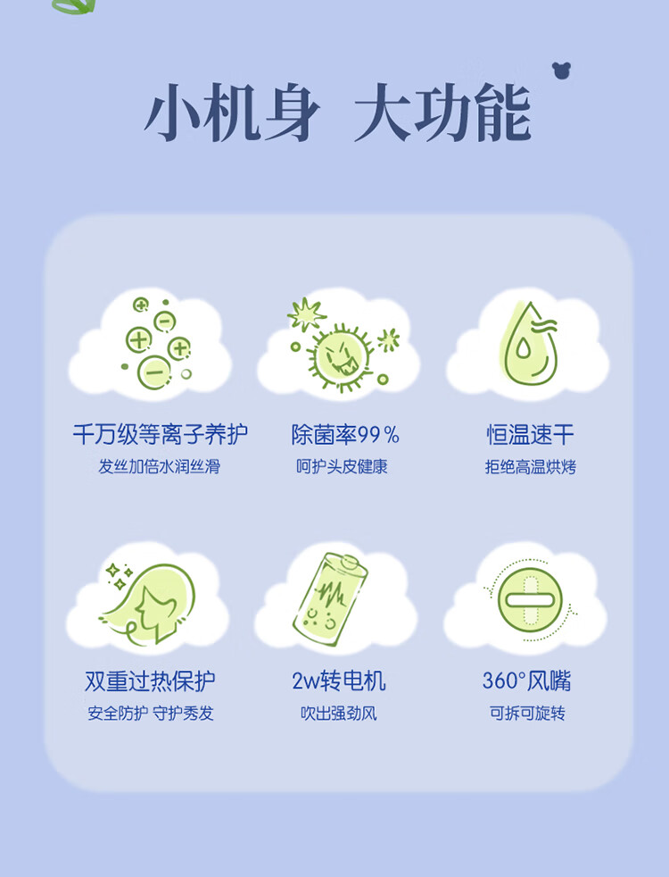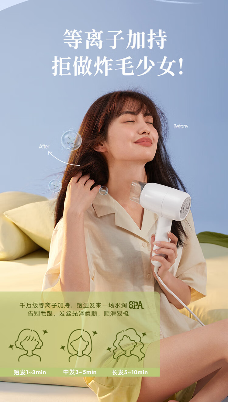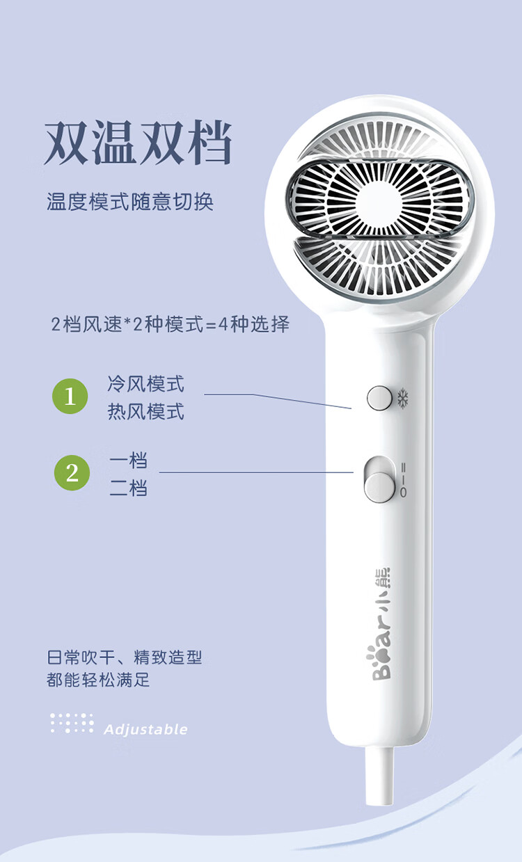 小熊电吹风机家用大功率负离子护发恒温速干迷你学生宿舍吹风机负离子 B18L7