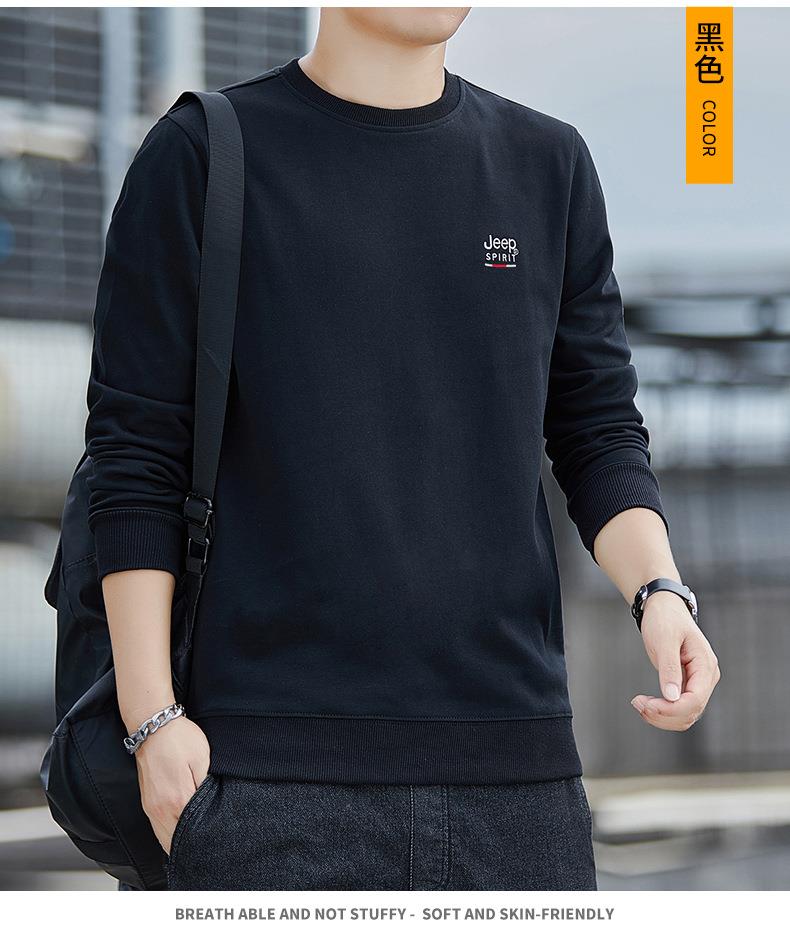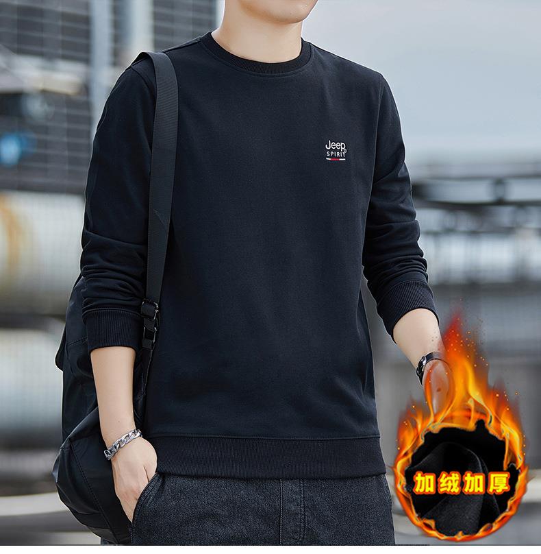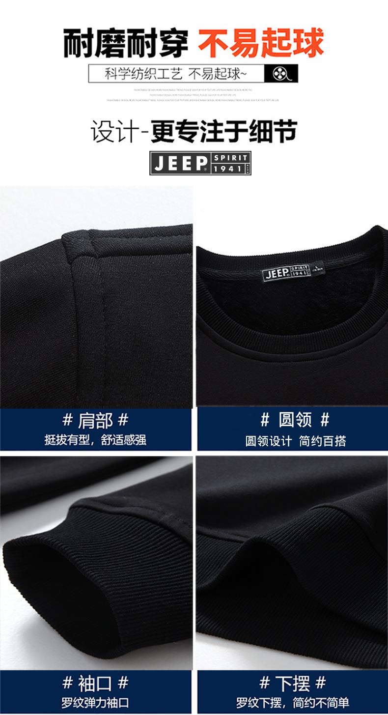 JEEP SPIRIT秋冬男士长袖加绒保暖圆领卫衣宽松时尚上衣2037B新款
