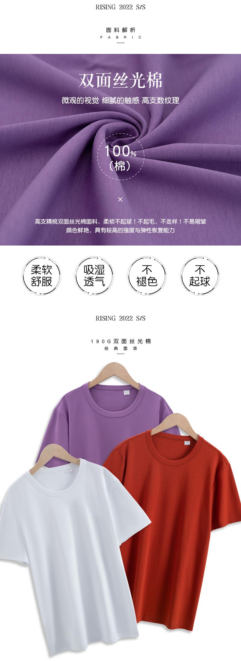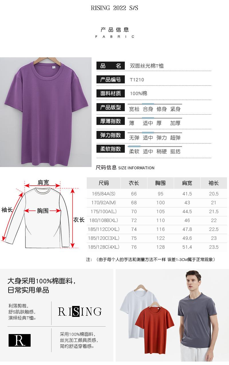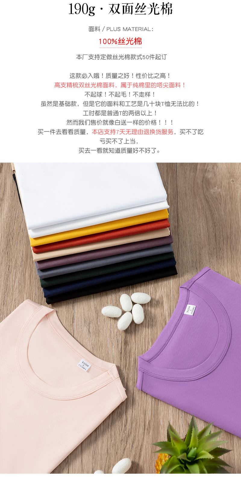 2024新款190g双面丝光棉男式短袖t恤厂家纯色圆领t恤春夏装新疆棉