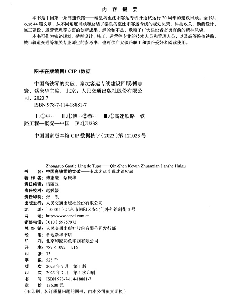 书名:中国高铁零的突破——秦沈客运专线建设回顾