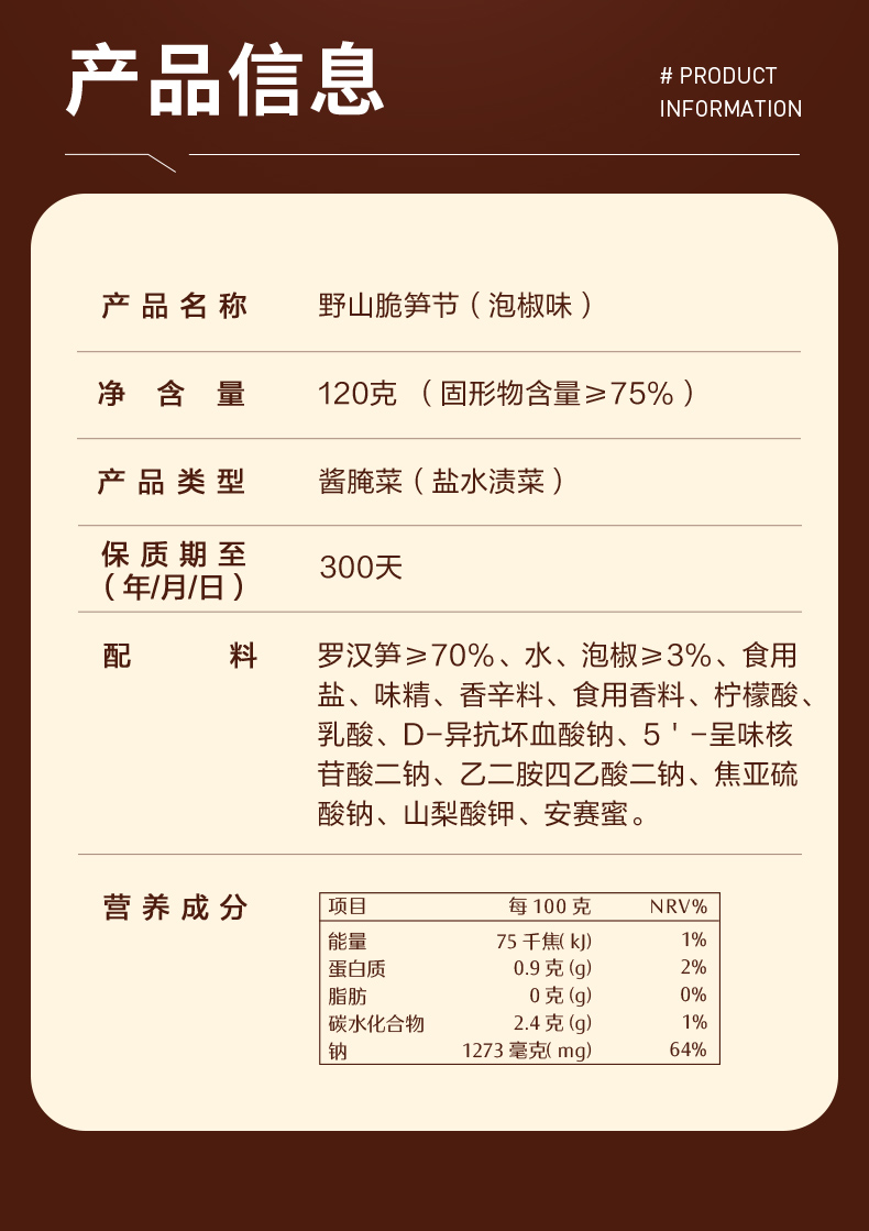 【江城百臻】良品铺子野山脆笋节(泡椒味)120g