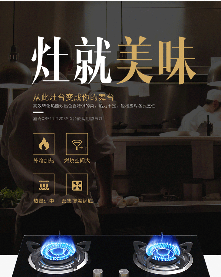 cdfh904pfj鑫奇XB511-T205-XT台嵌两用燃气双灶(熄保天然气)