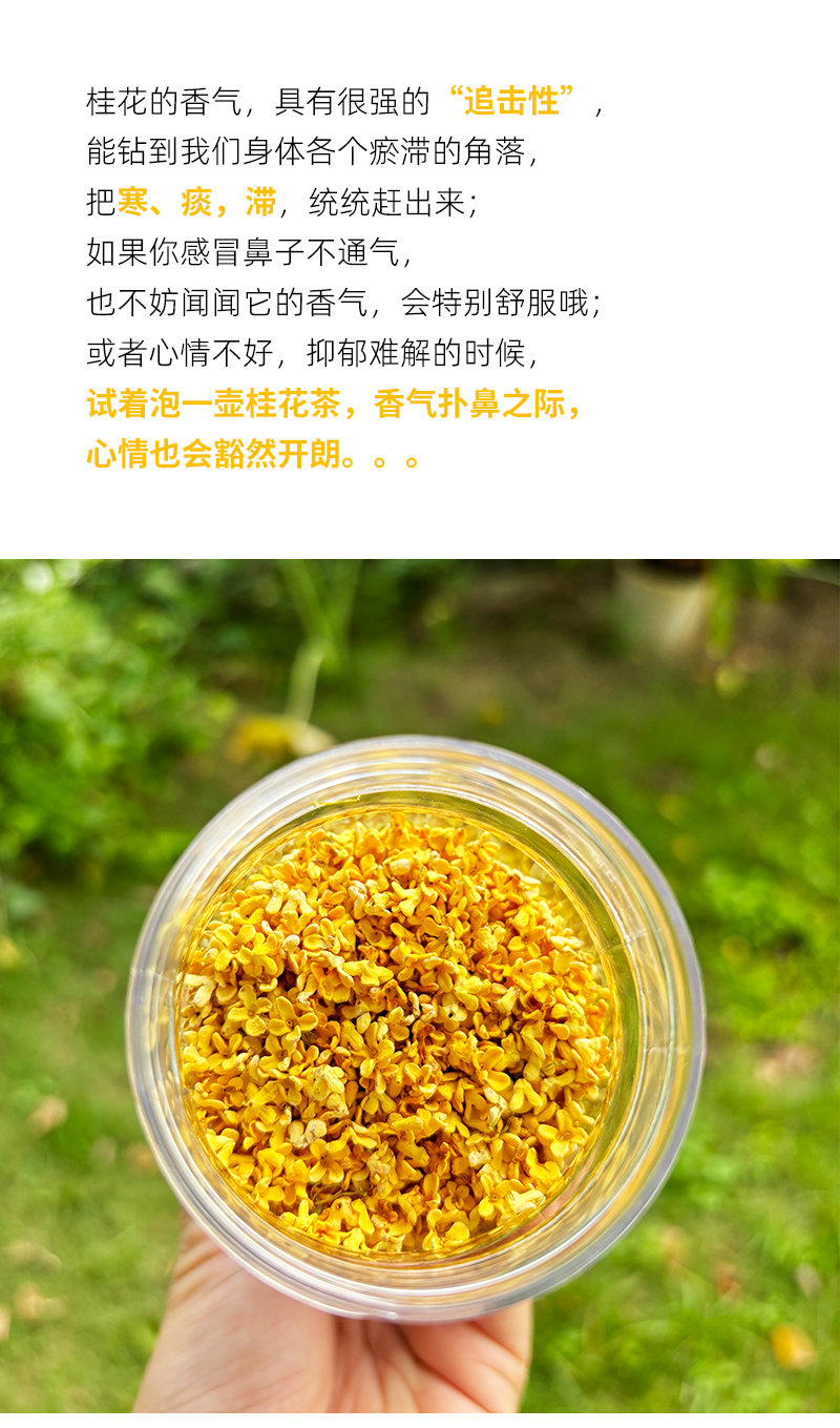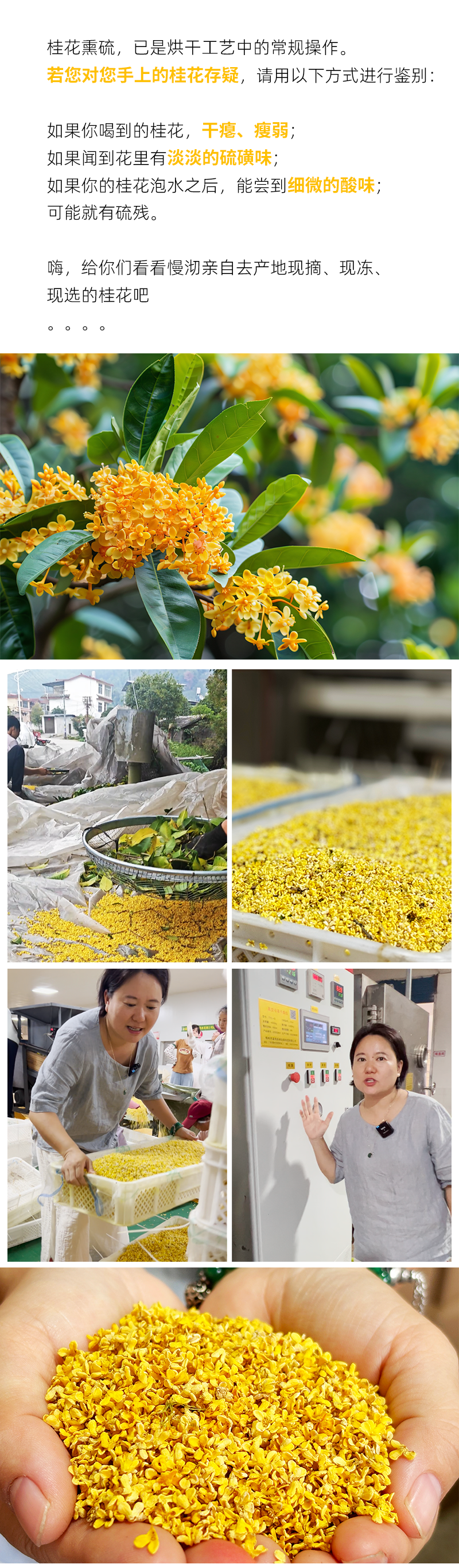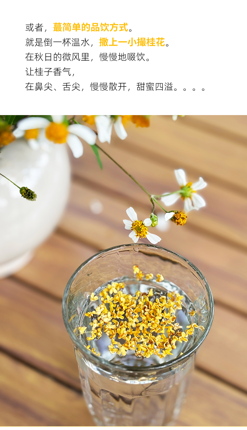 我们采用的是来自桂林核心产区的金桂花,这种桂花更适合日常饮用,用来做饮品、甜品都是极佳的!