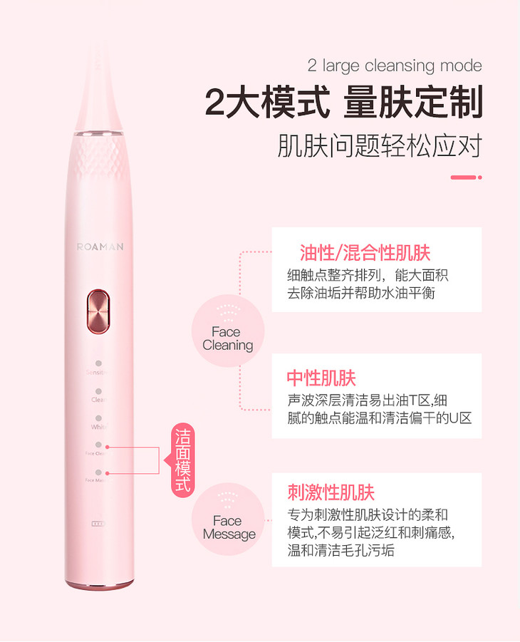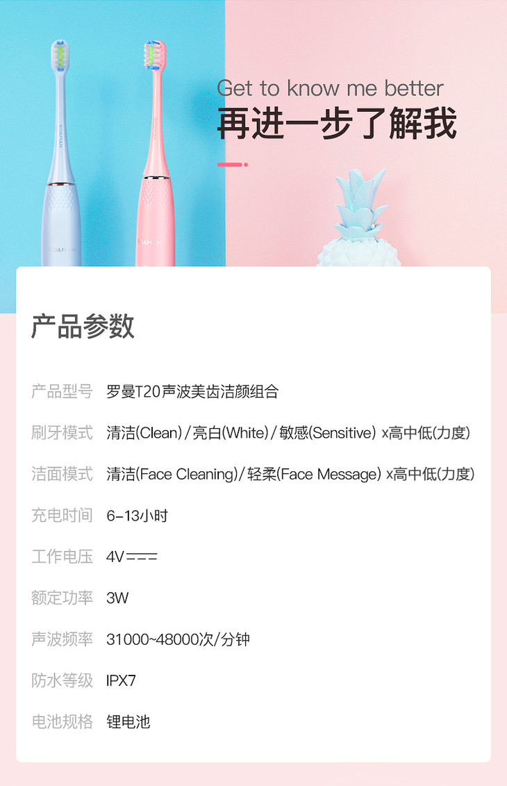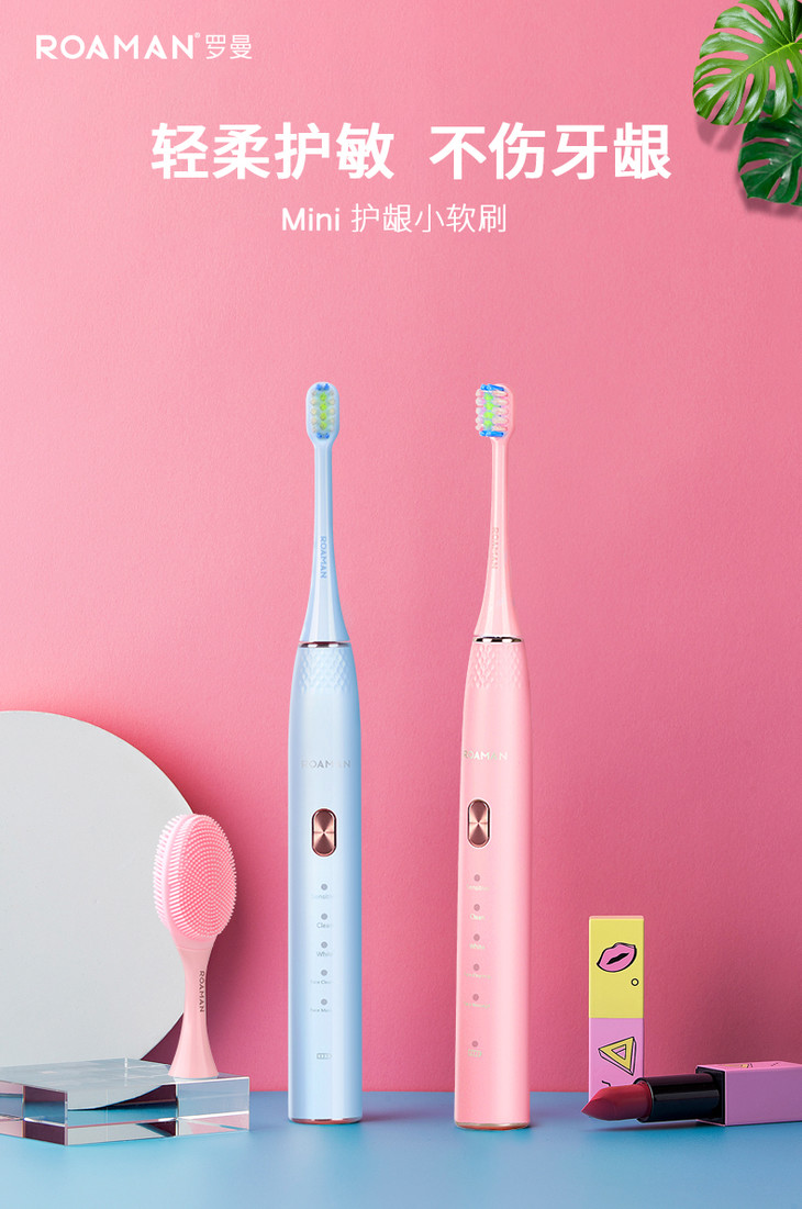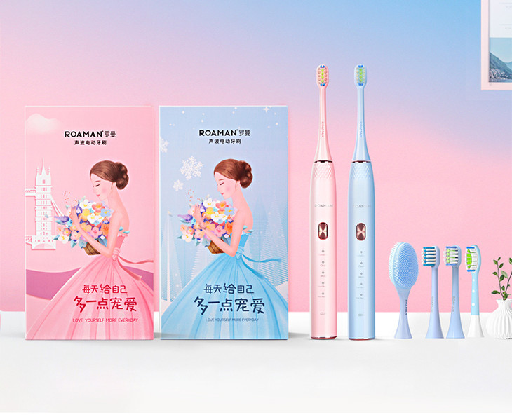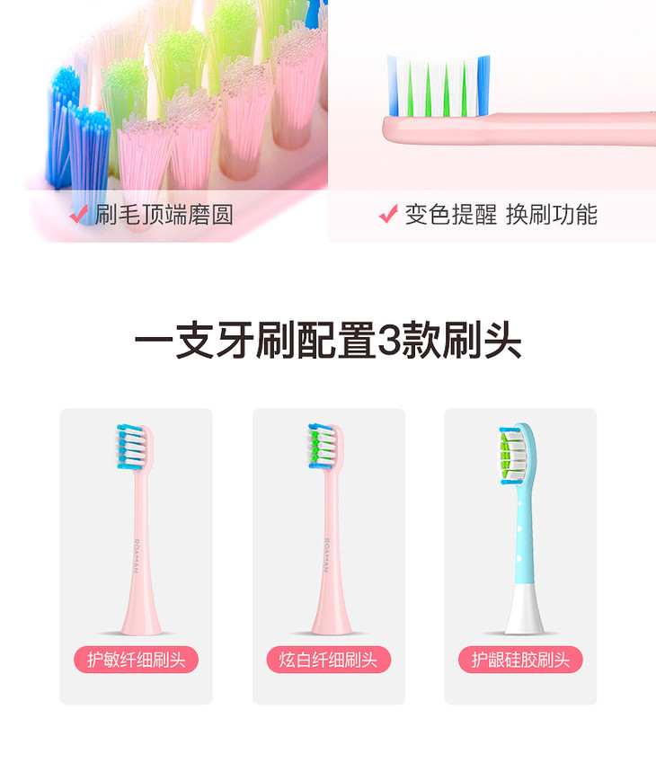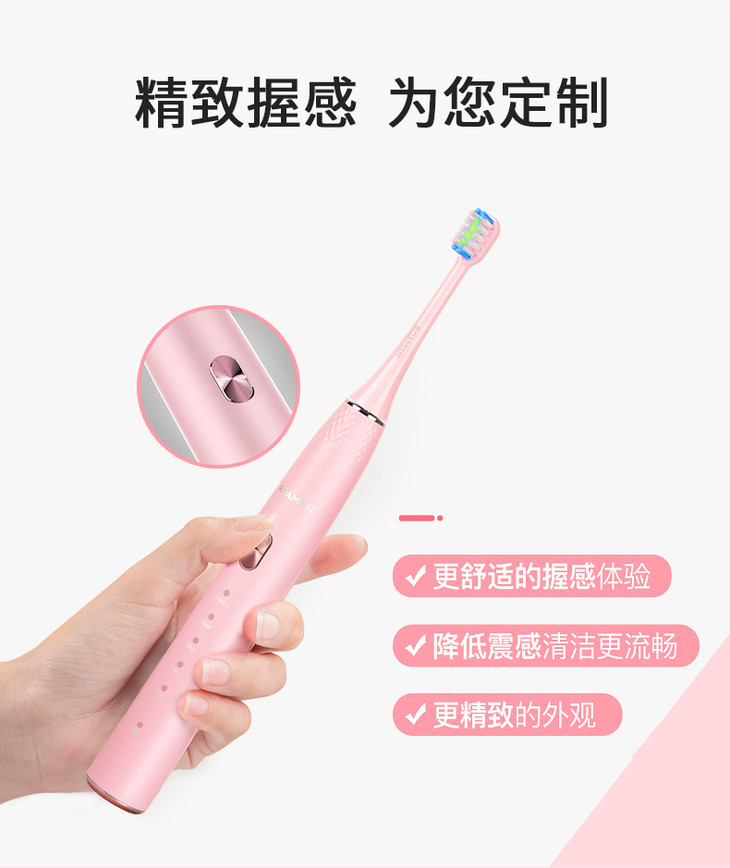 罗曼(509001 )电动牙刷T20 成人情侣款充电家用防水 洁面+洁齿 T10升级款 内含4支刷头 樱花粉