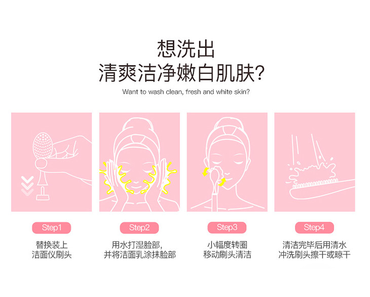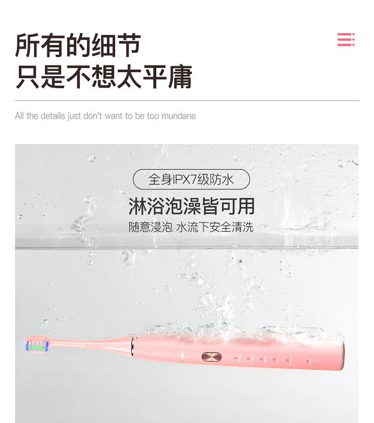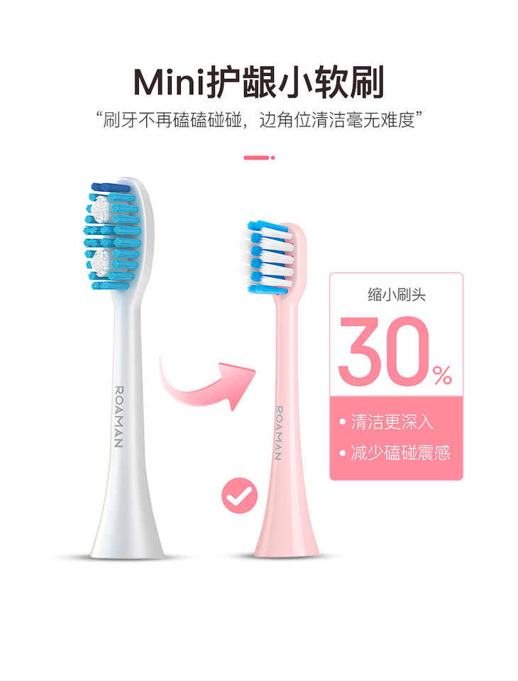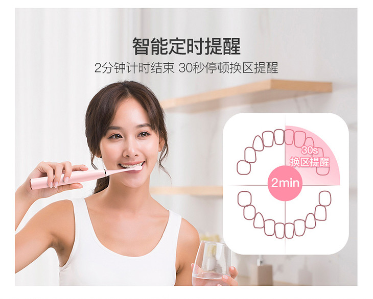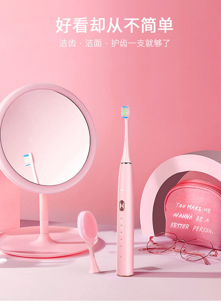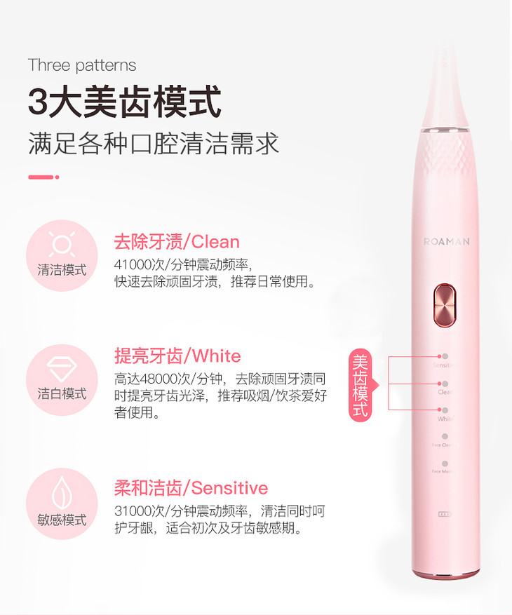 罗曼(509001 )电动牙刷T20 成人情侣款充电家用防水 洁面+洁齿 T10升级款 内含4支刷头 樱花粉