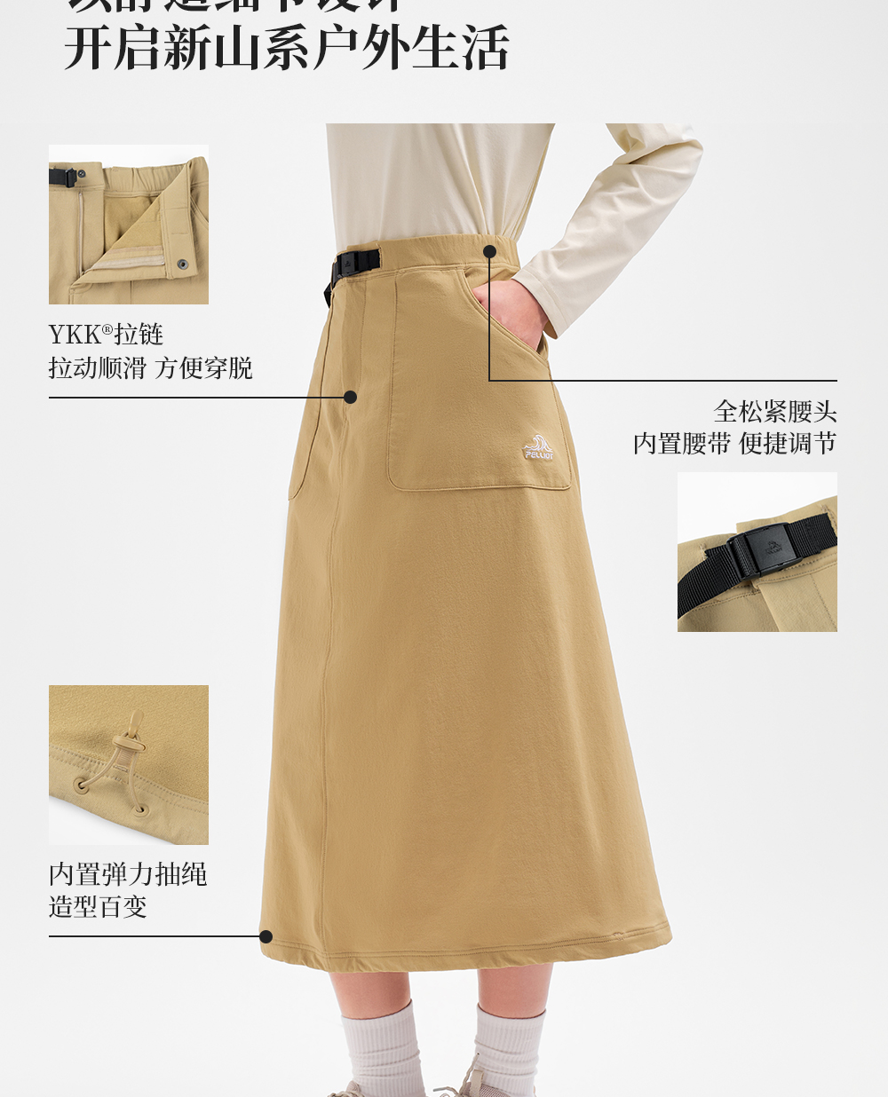 【山系】伯希和户外半身裙女秋季新款CORDURA大裙摆耐磨运动长裙