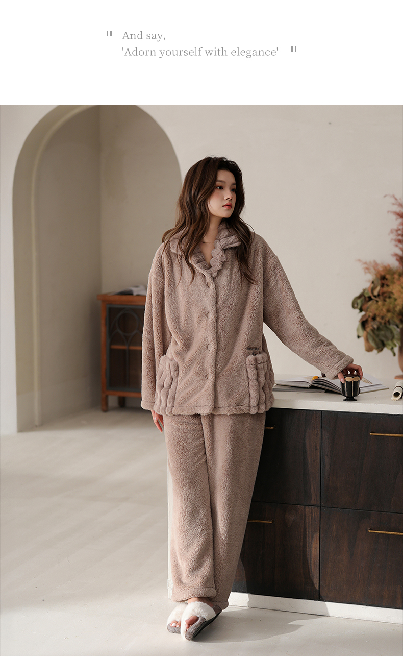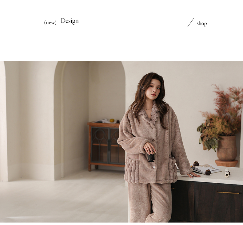 可人儿原创冬季舒棉绒女士睡衣韩系加厚保暖可外穿珊瑚绒家居服