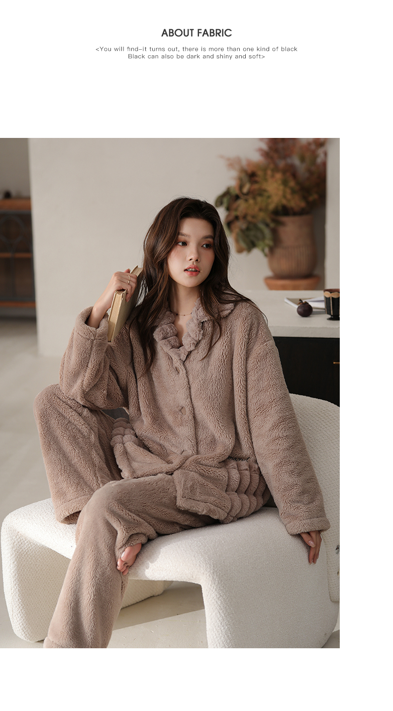 可人儿【云朵绒】睡衣女士冬季保暖气质加厚法兰绒可外穿家居套装