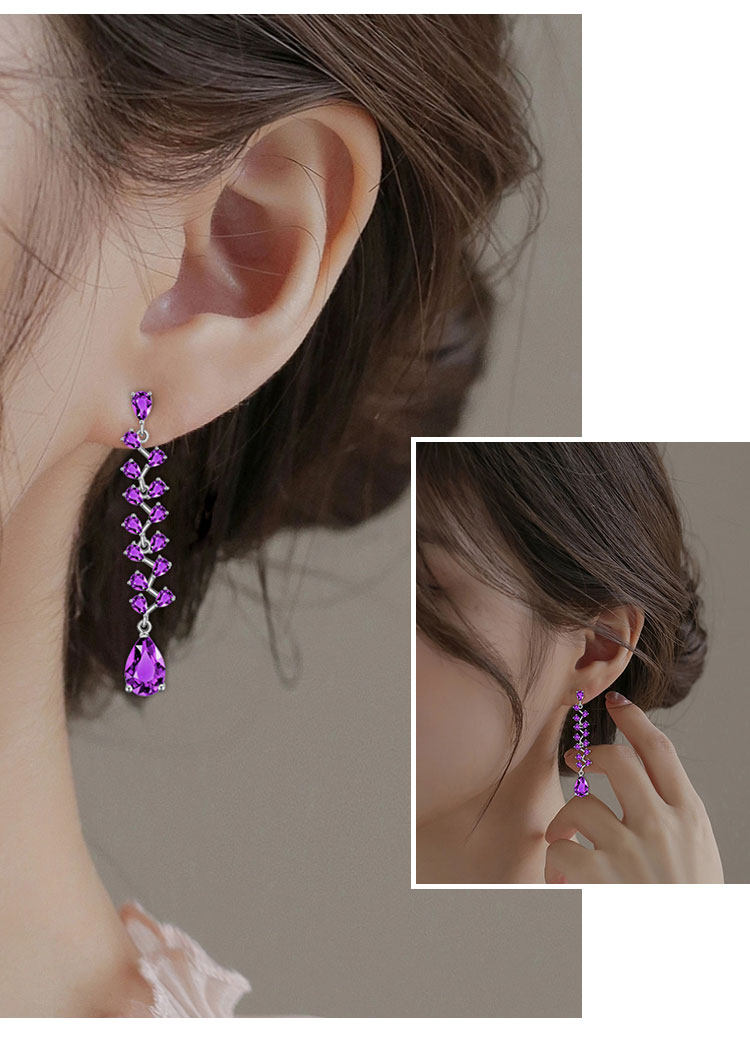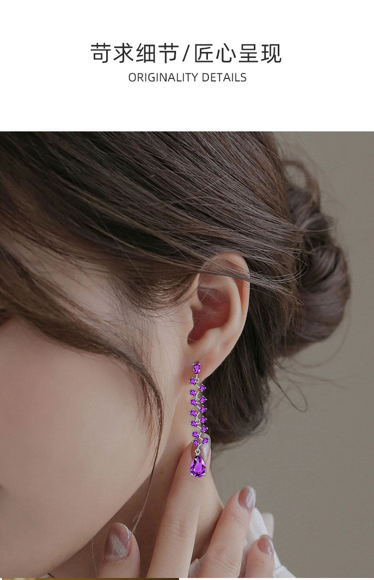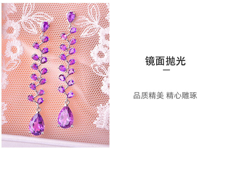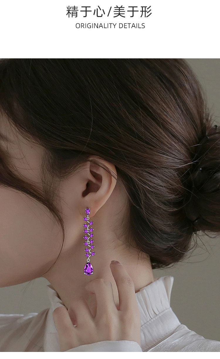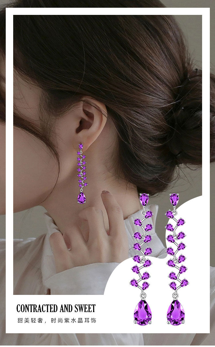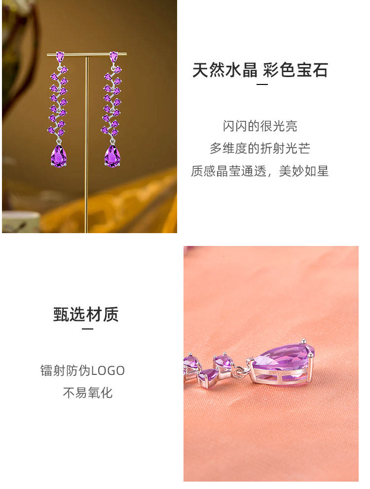 【天然紫水晶耳钉】S925银时尚群镶饰品送女生生日节日礼物JE25021-水晶CC
