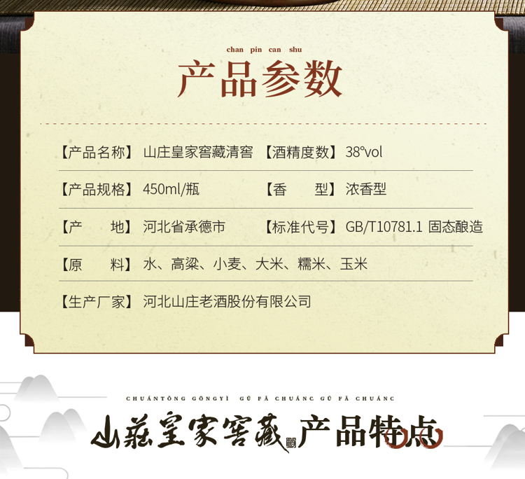 【新品】山庄皇家窖藏 清窖 38度浓香型白酒礼盒装450ml单瓶