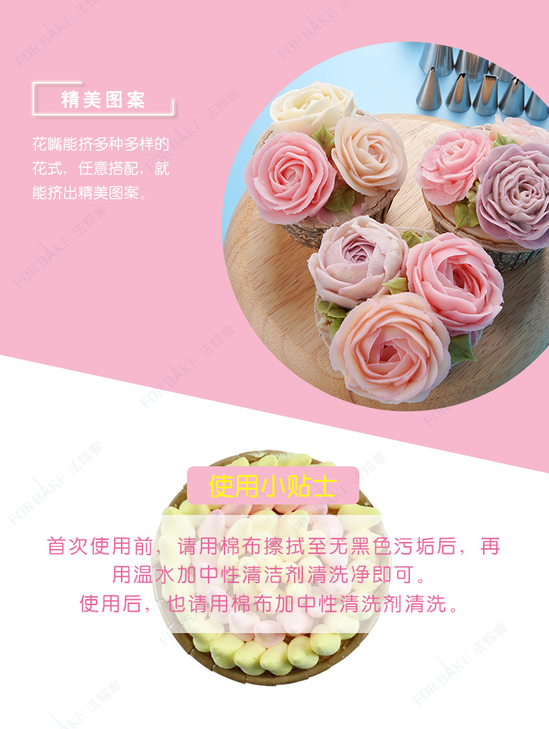 (多款)法焙客不锈钢裱花嘴6齿/8齿/18齿/太阳齿/圣安娜/圆孔/花叶 奶油蛋糕裱花工具