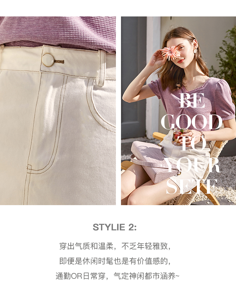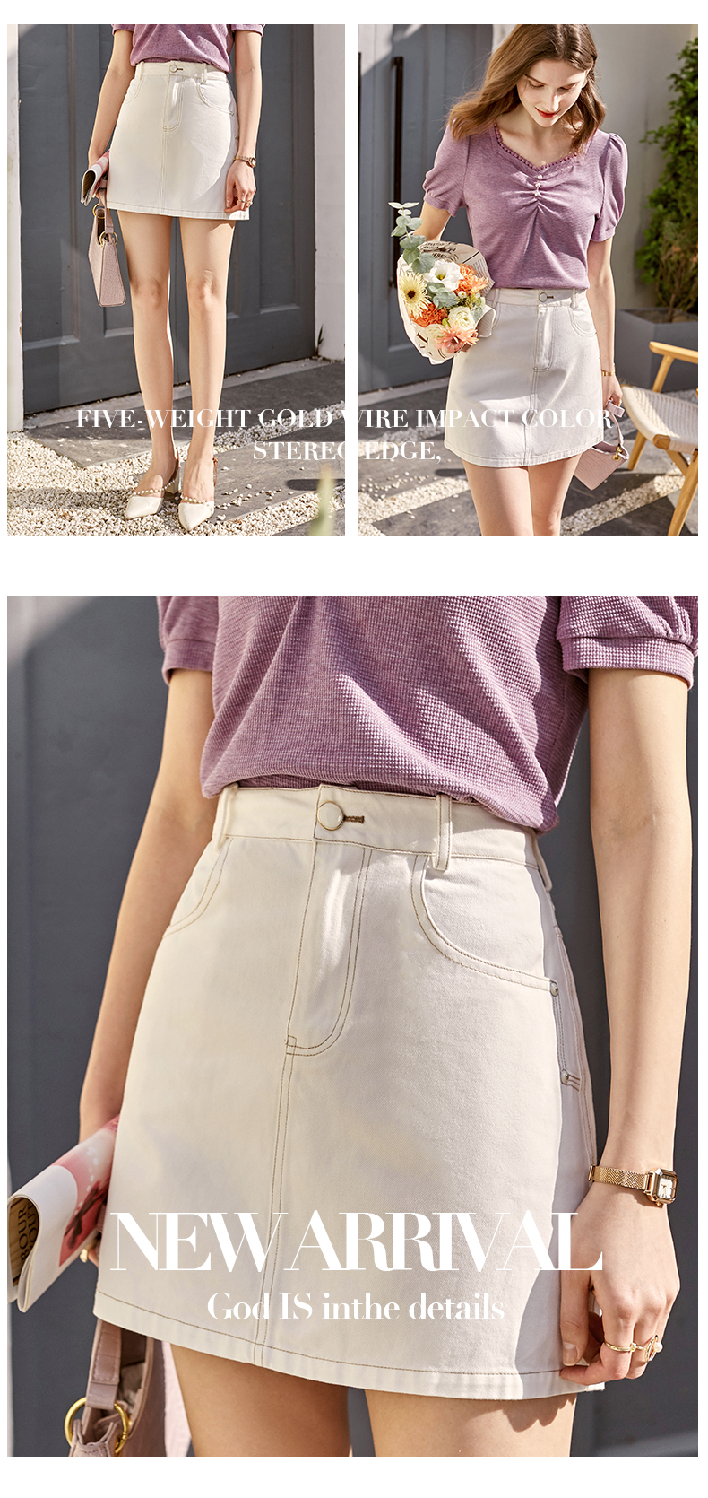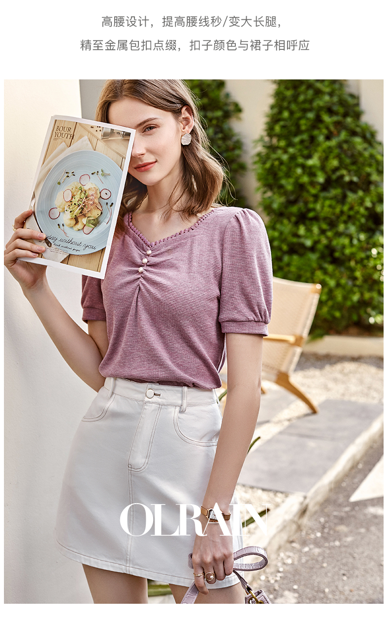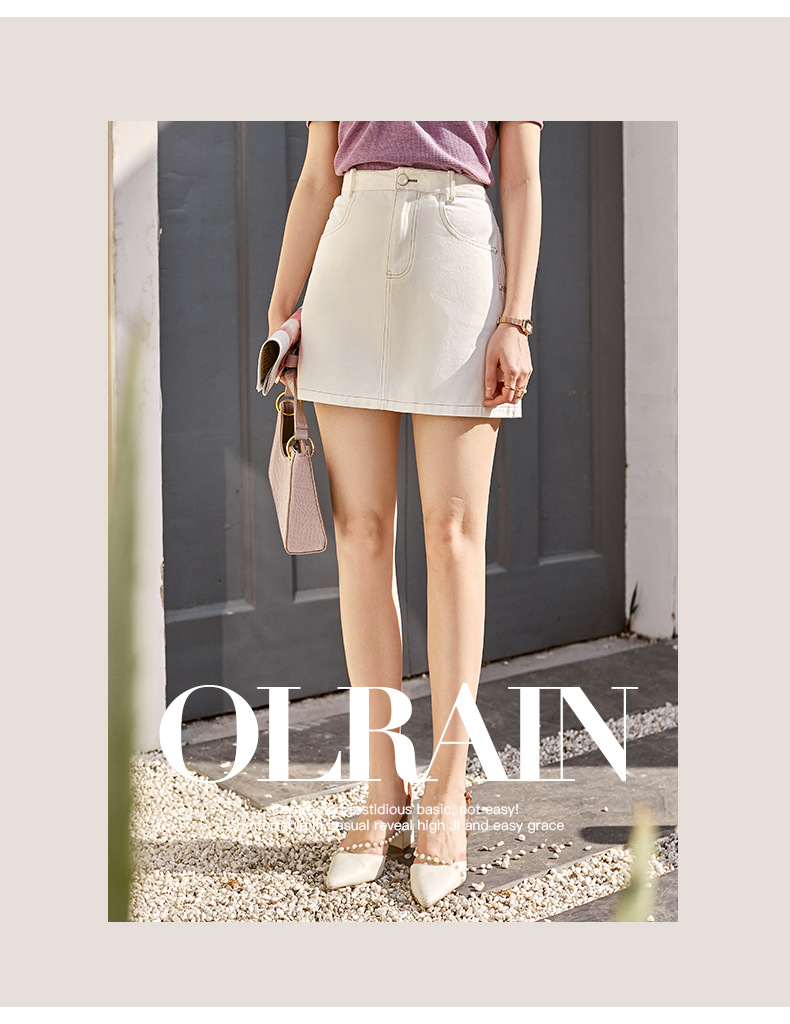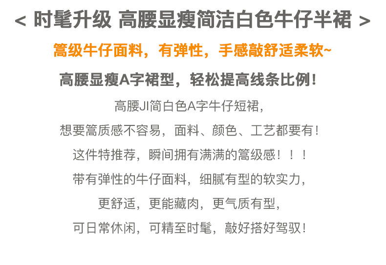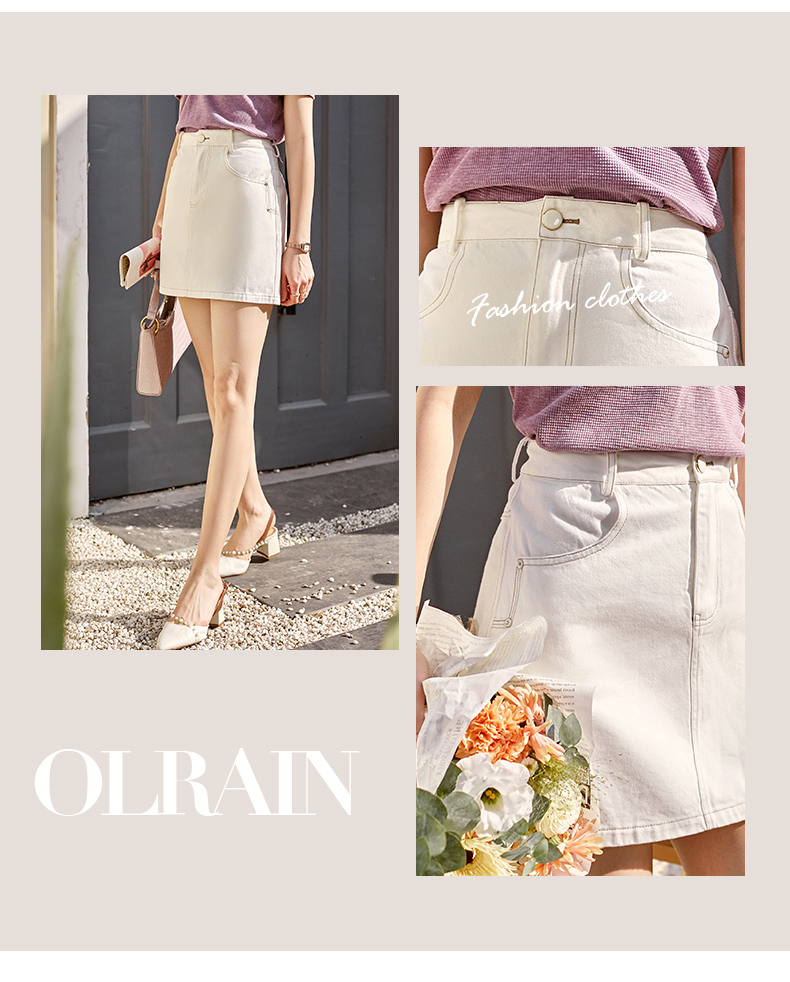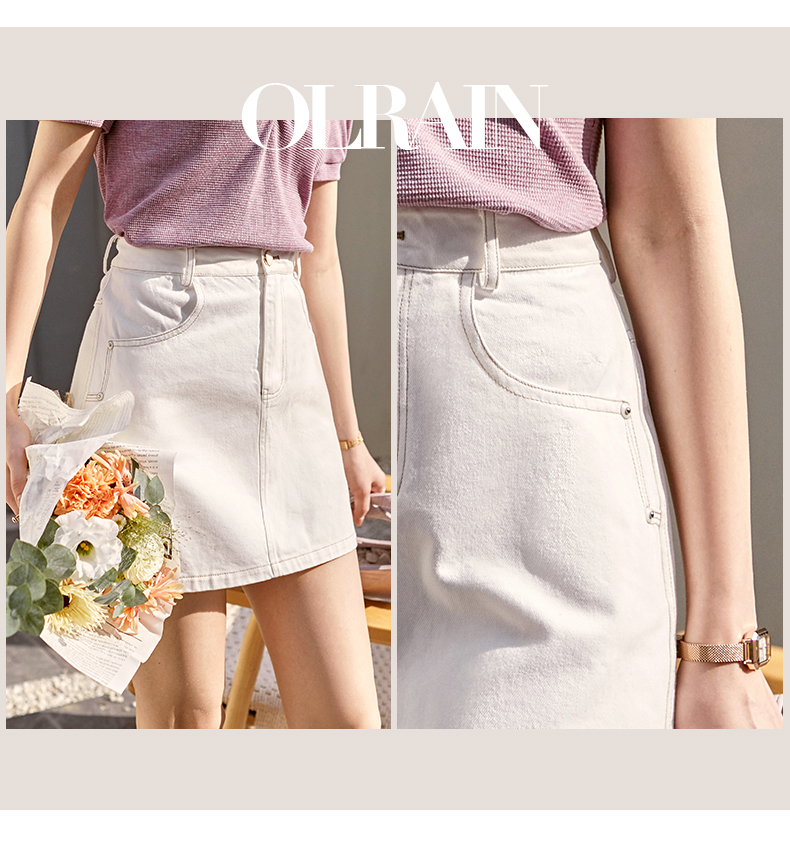 欧芮儿白色牛仔半身裙2021春夏高腰显瘦时髦简洁休闲百搭通勤短裙