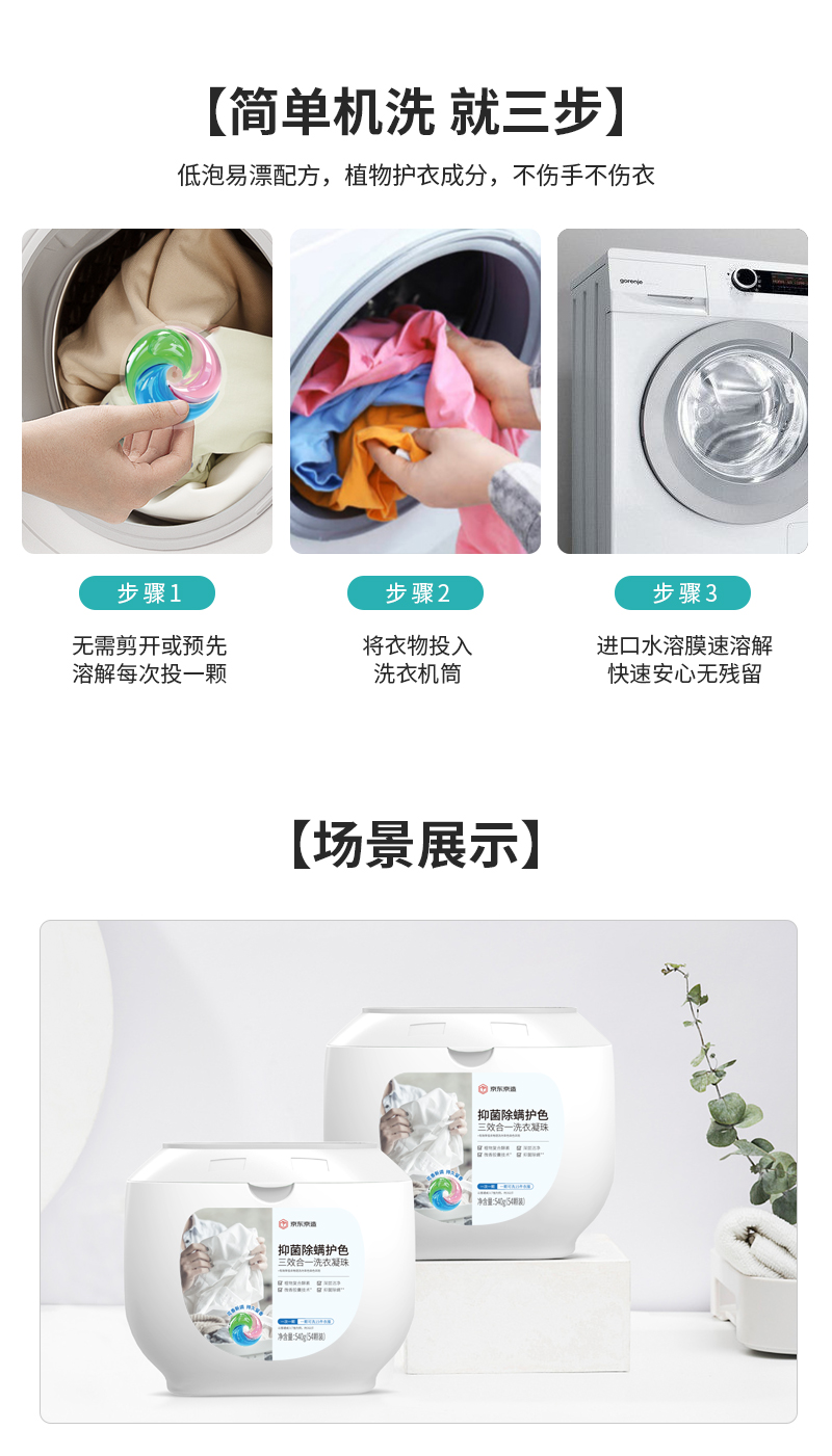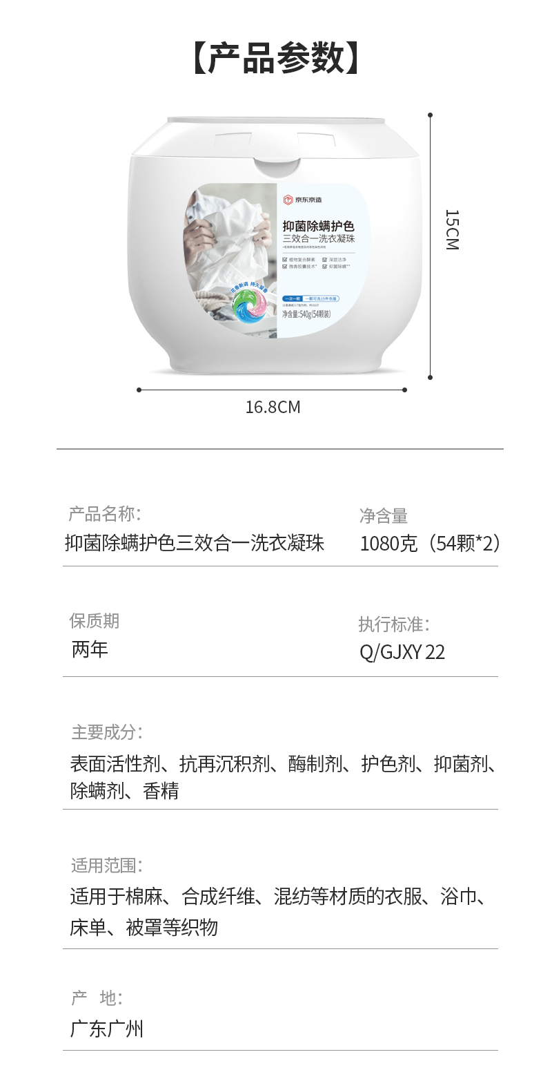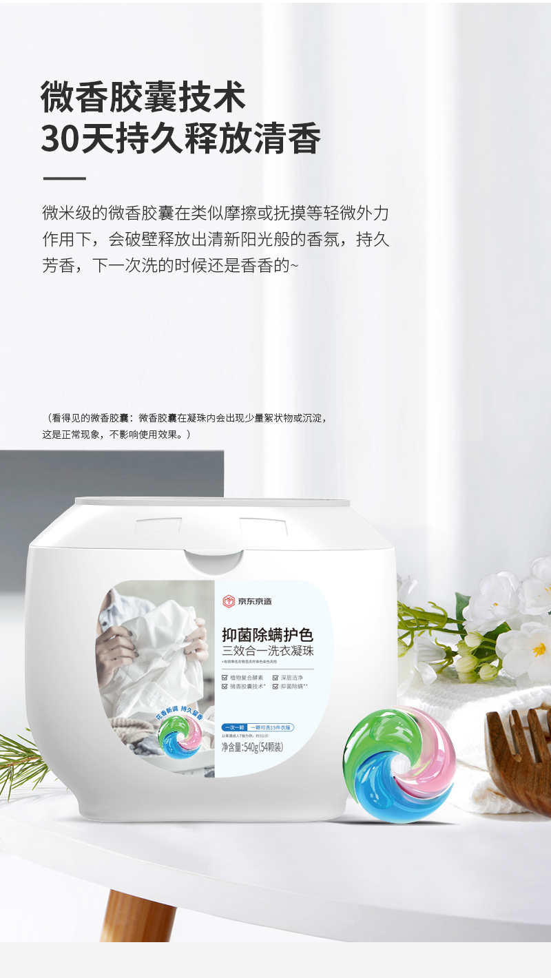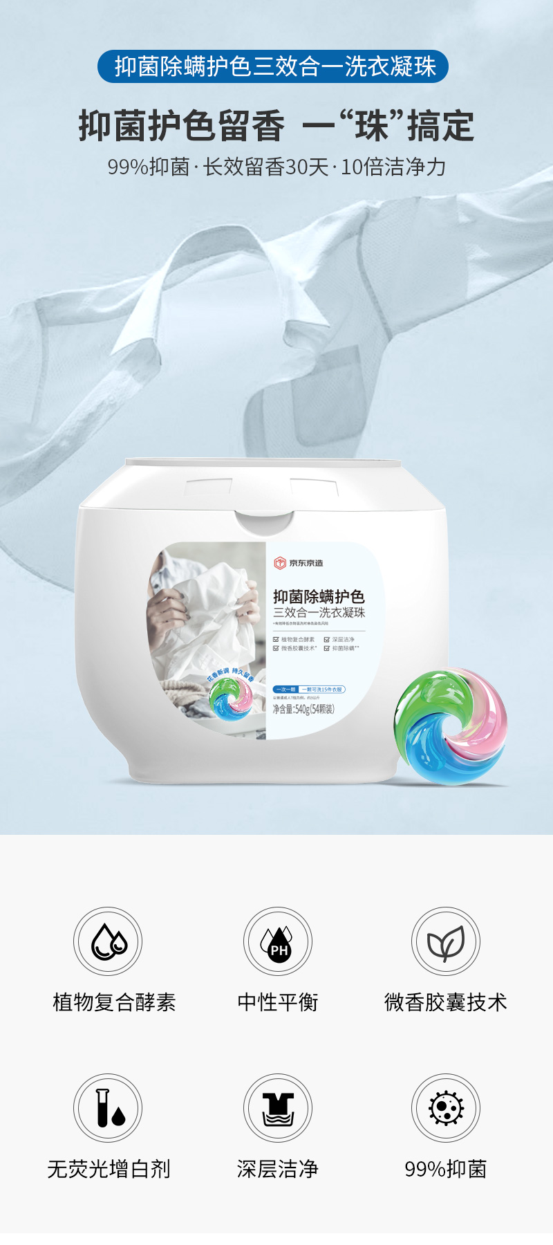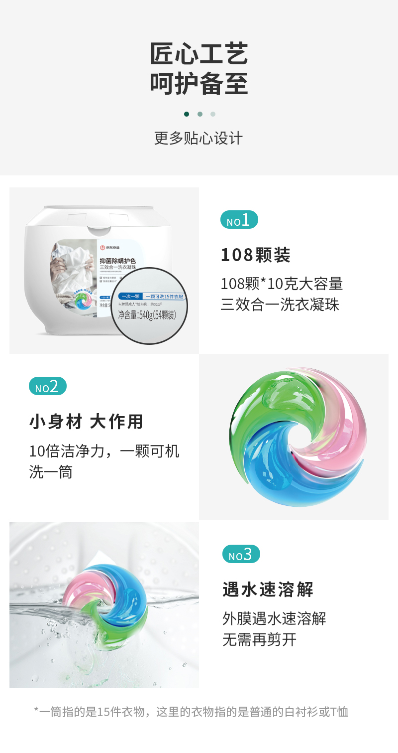 京东京造 3合1洗衣凝珠108颗(54颗*2) 抑菌除螨护色洗衣球 深层洁净浓缩洗衣液 持久留香