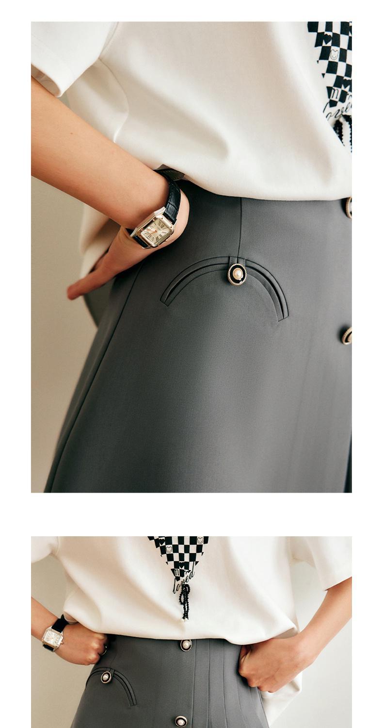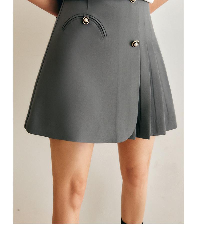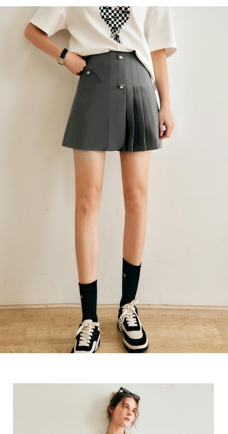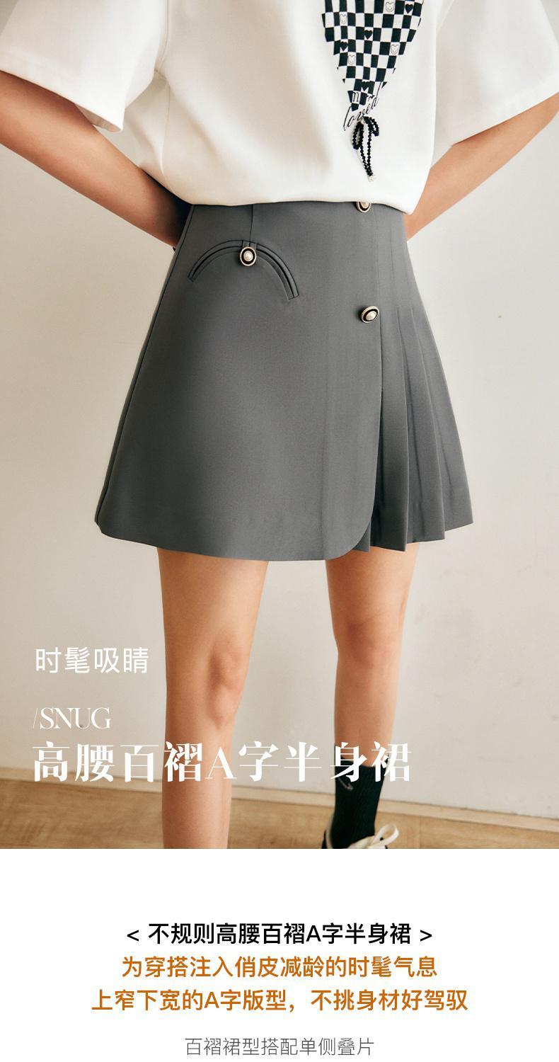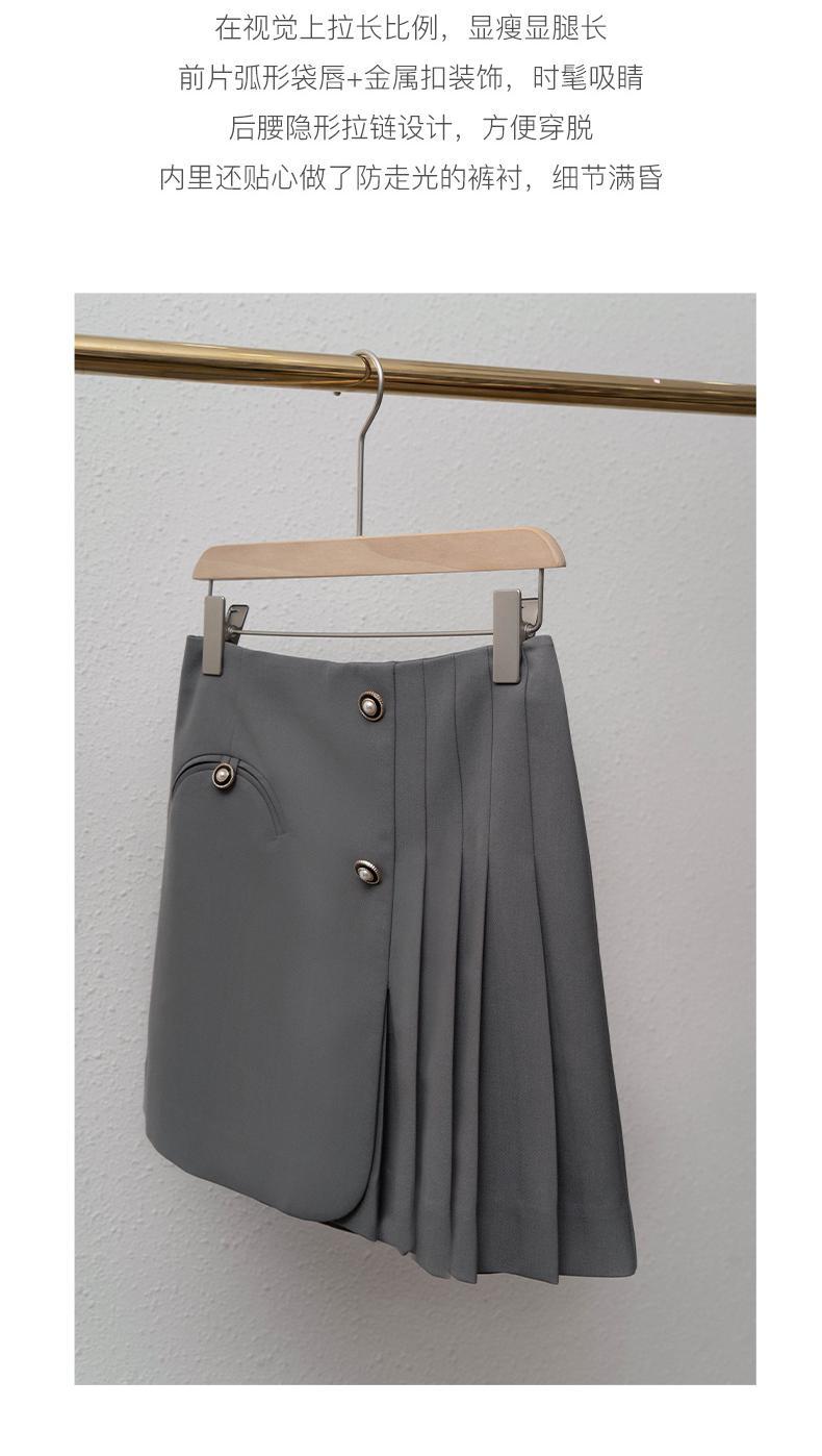 欧芮儿灰色半身裙女夏季2022新款高腰减龄学院风不规则百褶a字裙