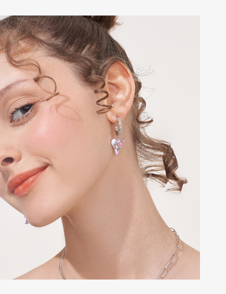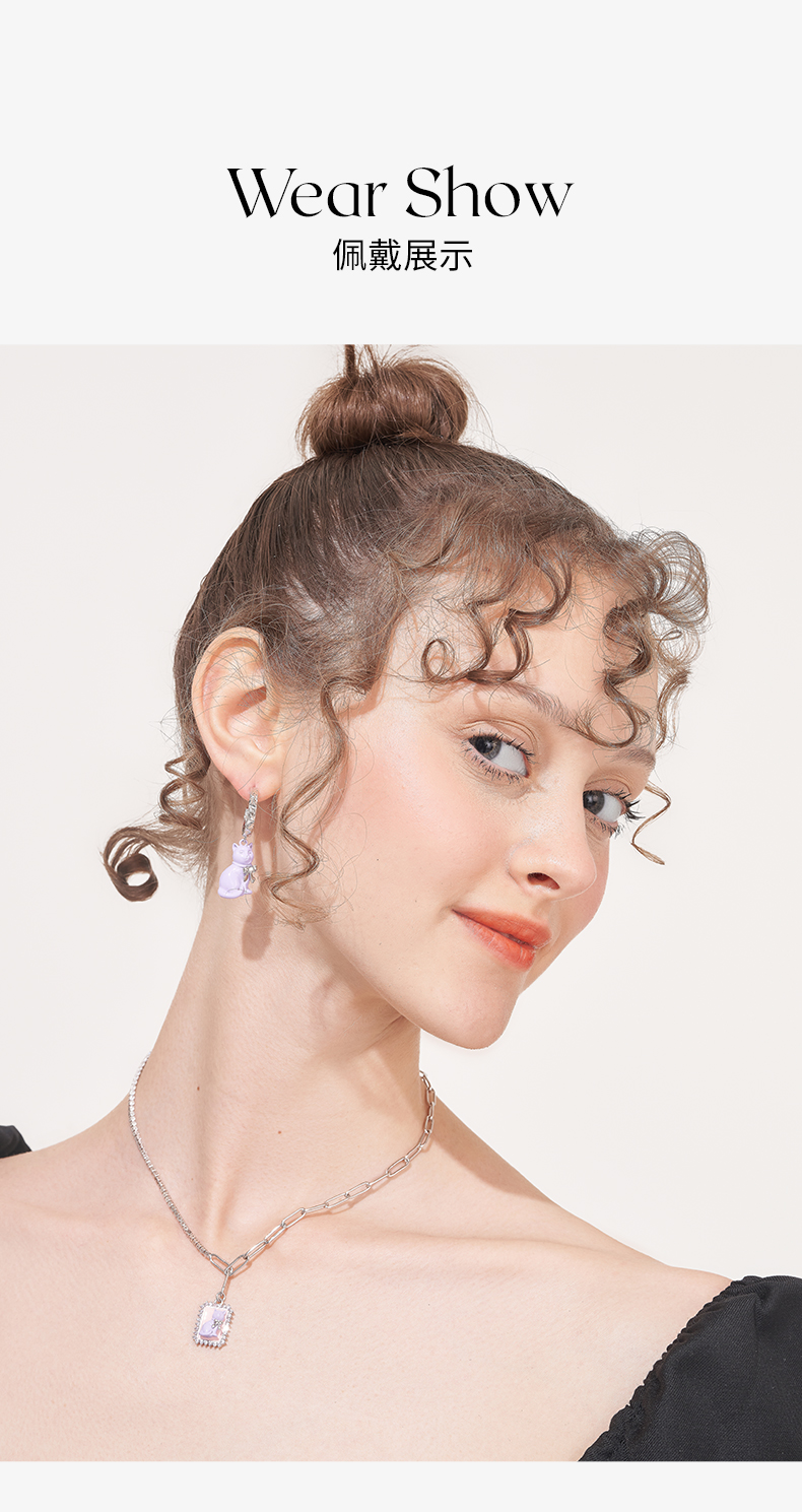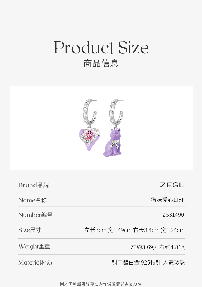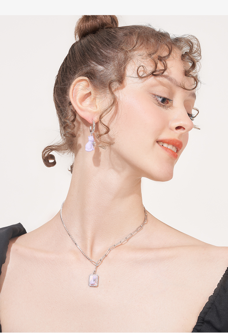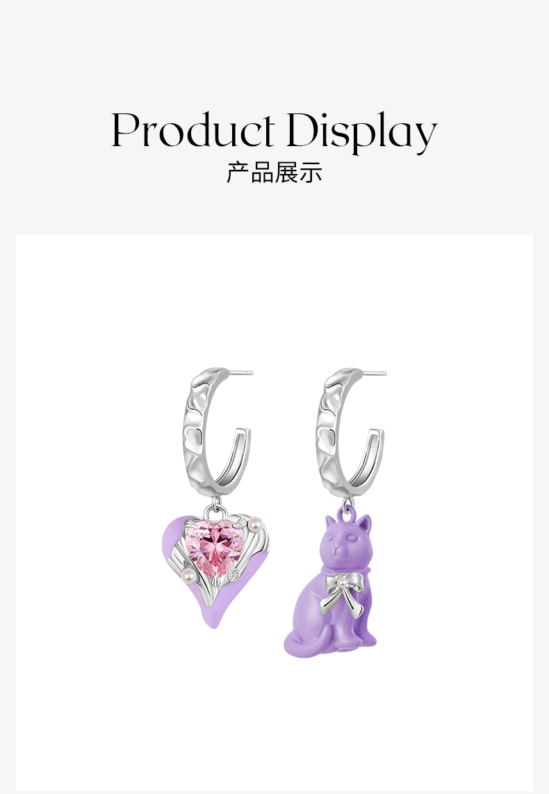 ZEGL设计师奶油少女系列猫咪爱心耳环女小众紫色耳钉银针秋冬耳饰