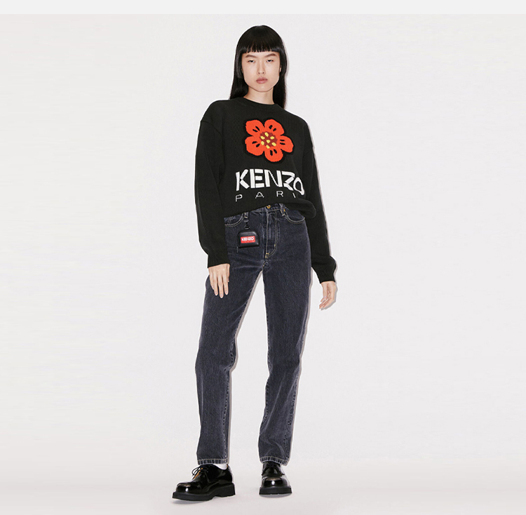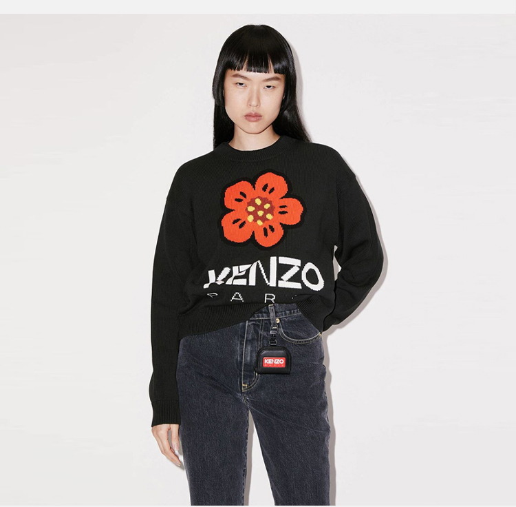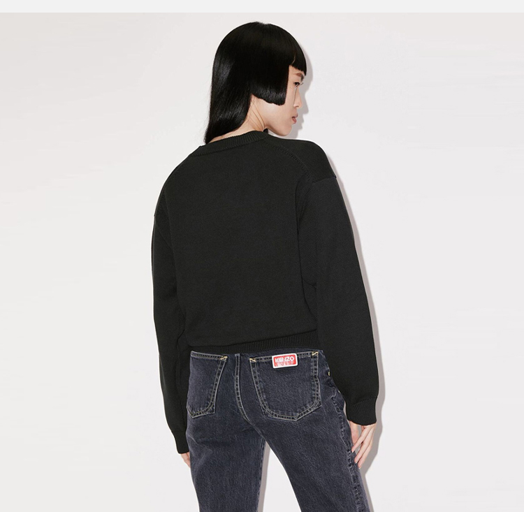 KENZO 高田贤三 女士棉质 “BOKE FLOWER” 徽标嵌花长袖针织衫 黑色 FD52 PU380 3LC 99J