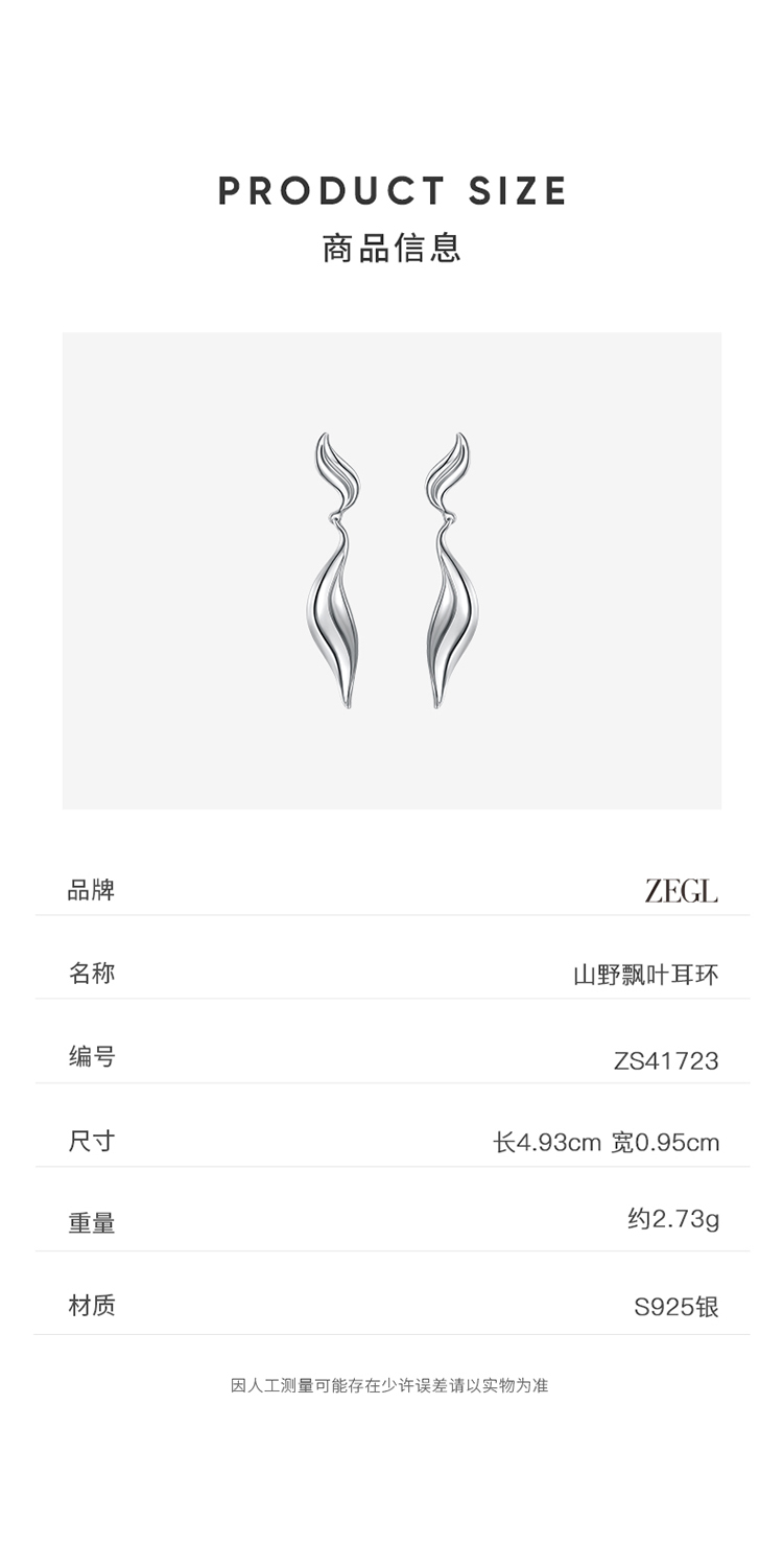 ZEGL设计师飞鸟系列叶子耳环女925银2024新款耳钉小众独特耳饰品