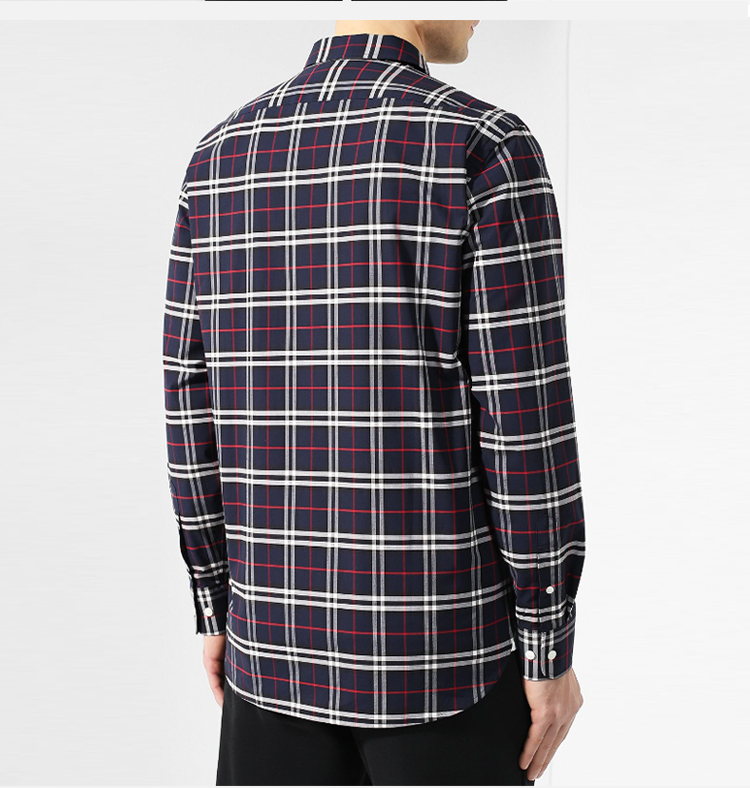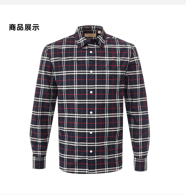 BURBERRY 巴宝莉 男士迷你弹力棉质长袖衬衫 深蓝色 8004835 A1960
