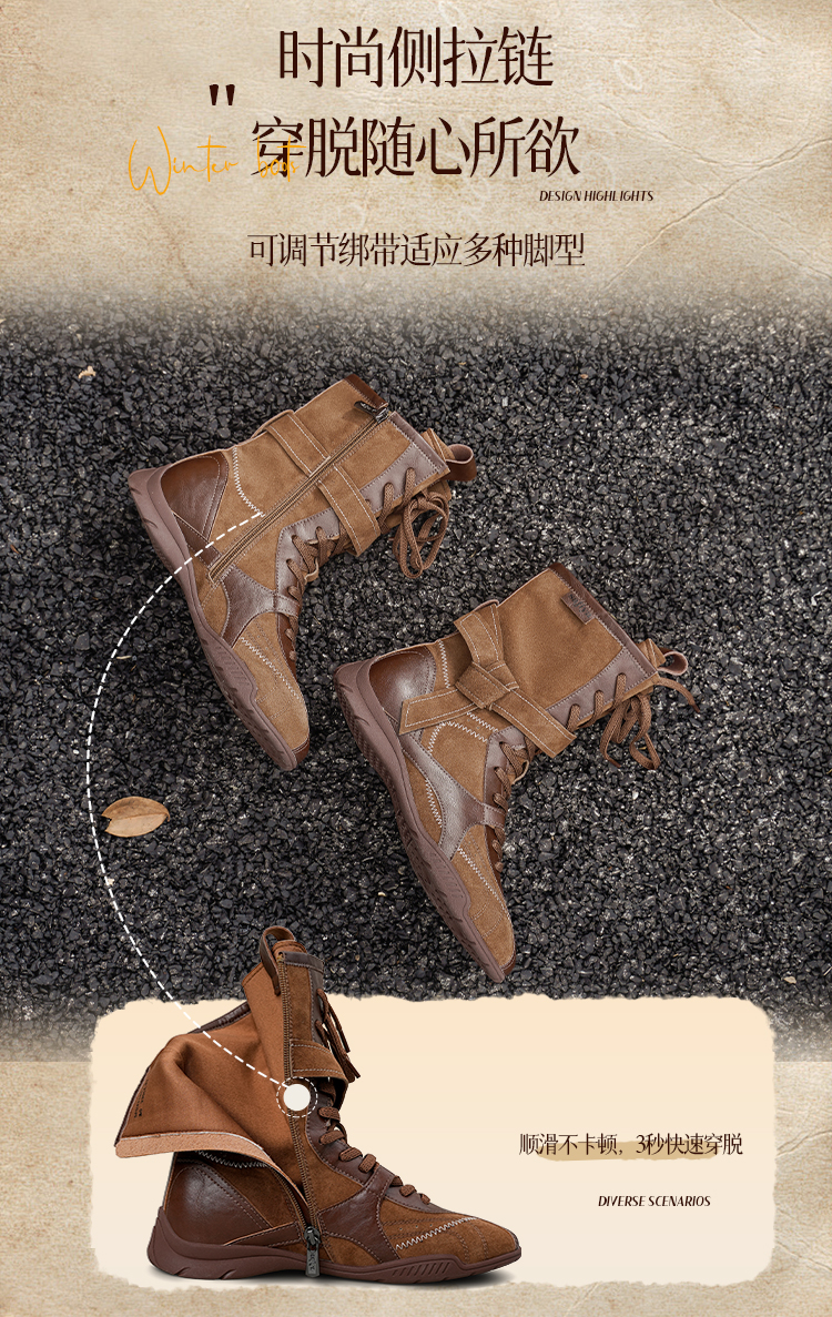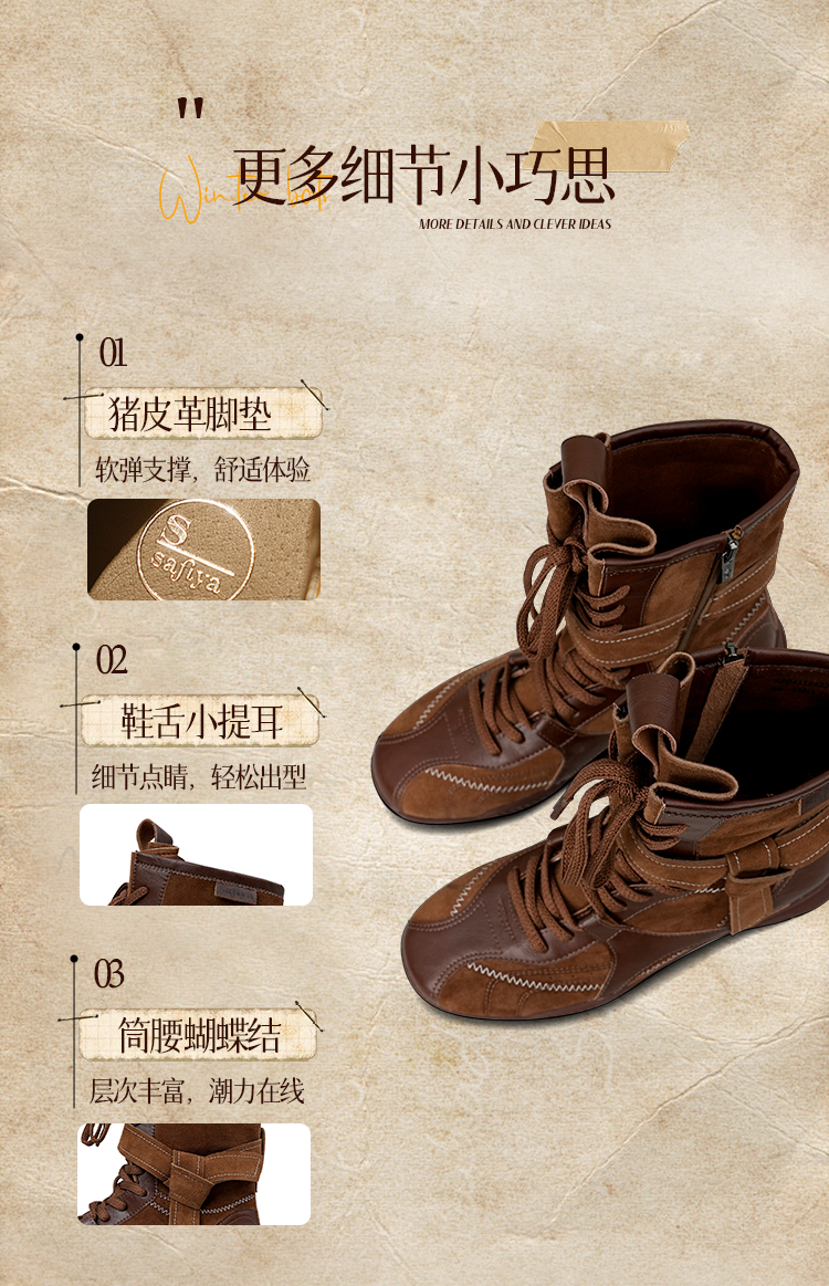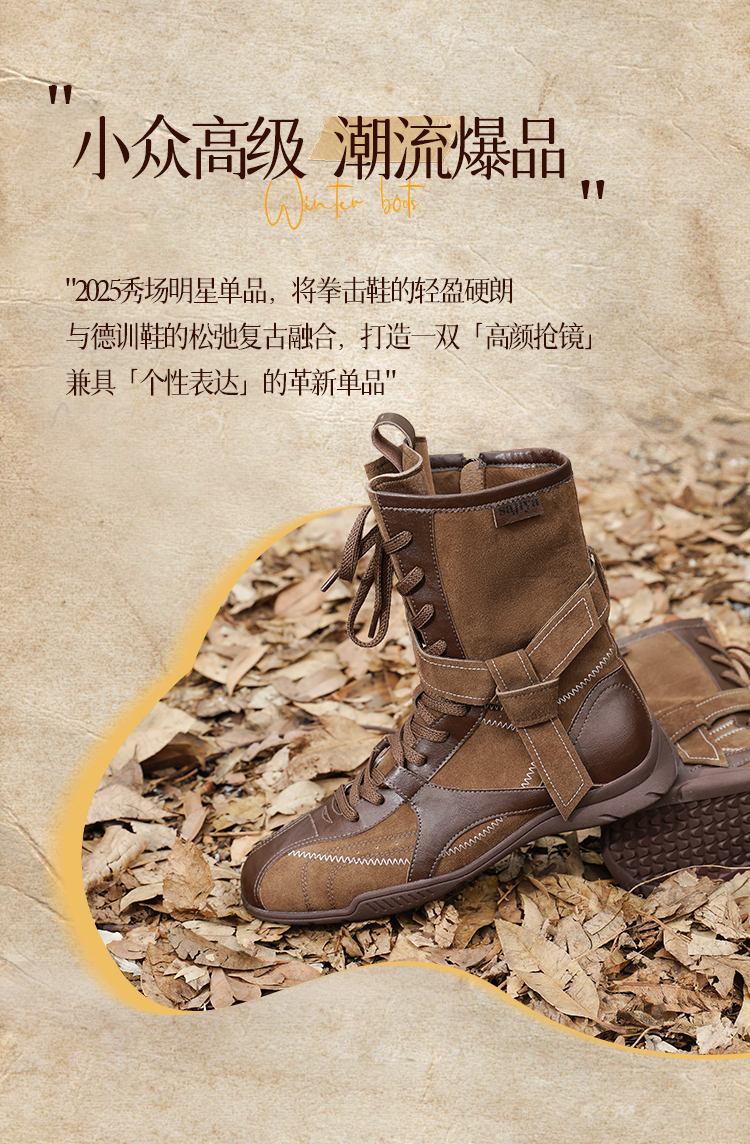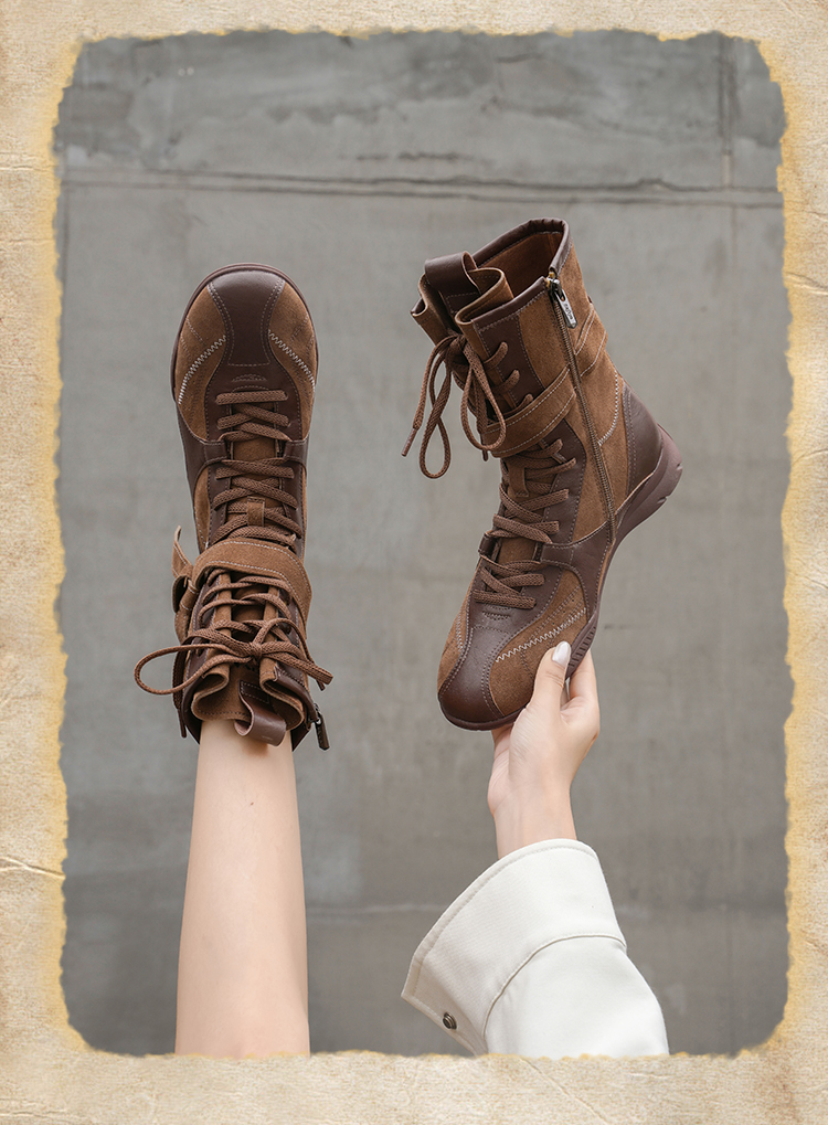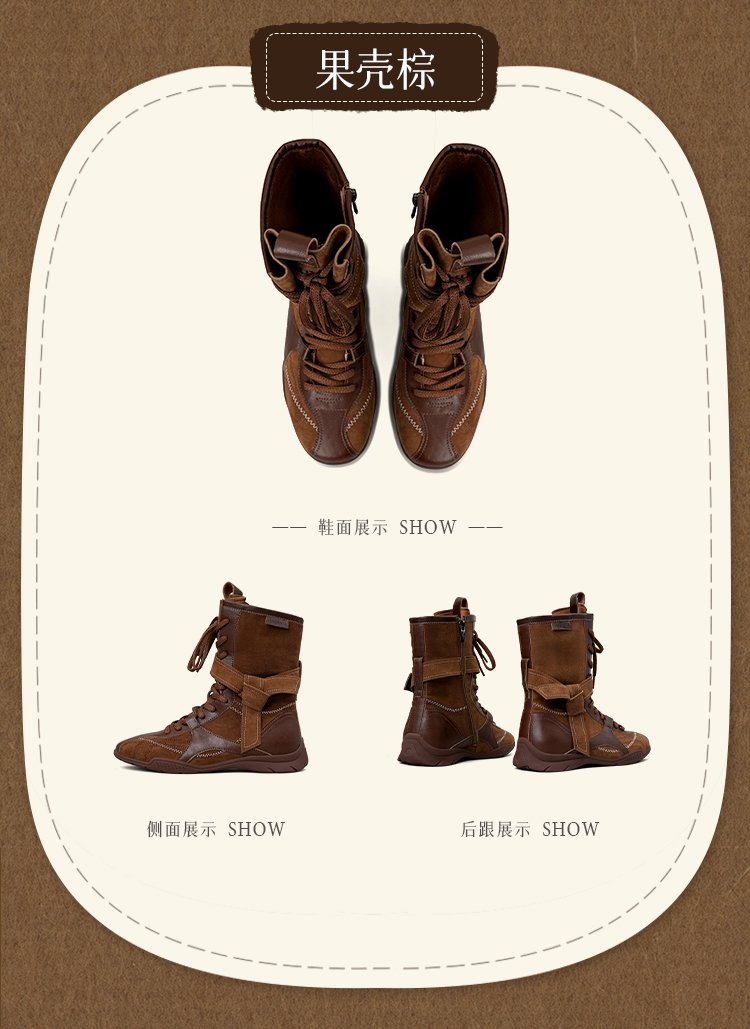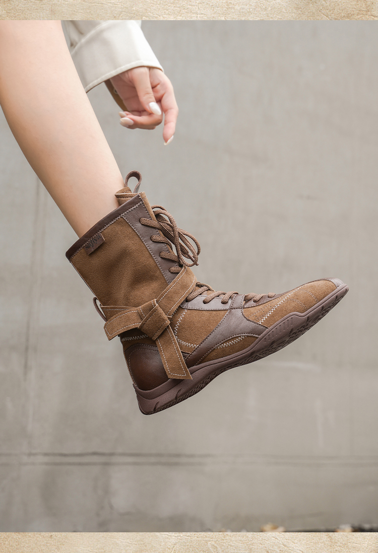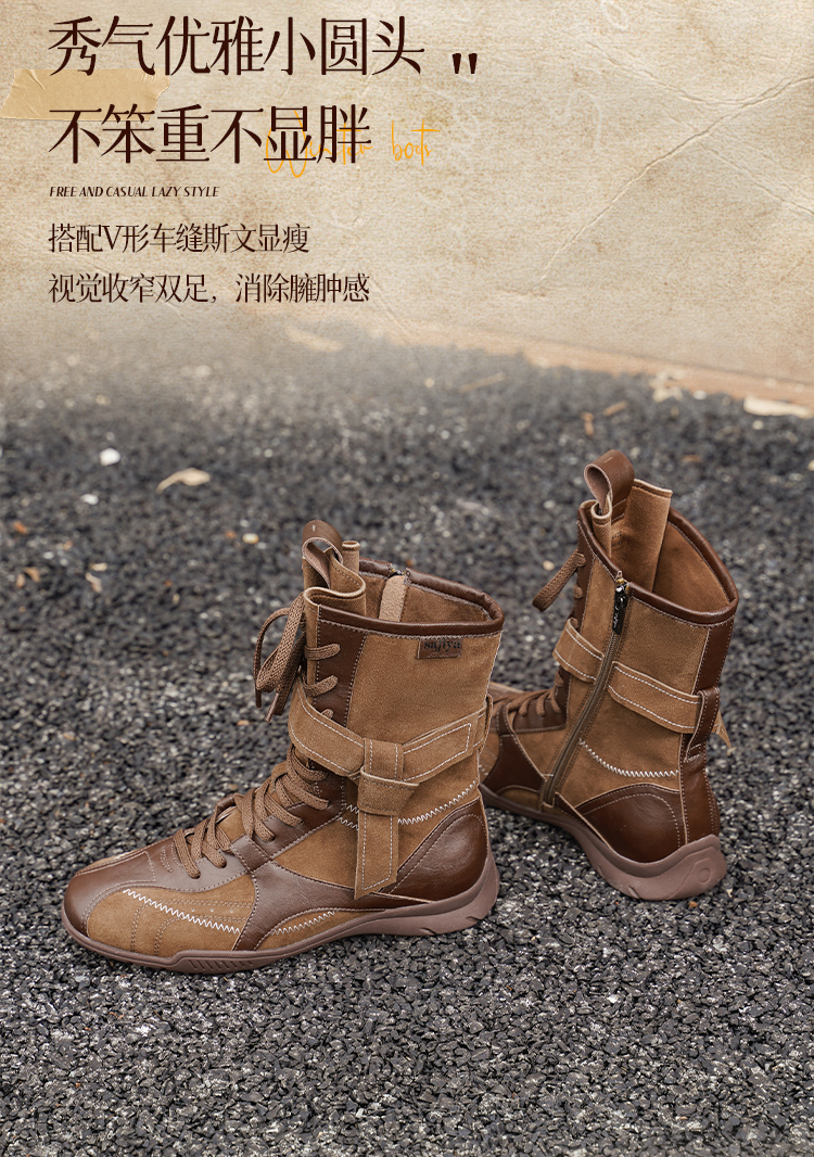 Safiya/索菲娅2025美拉德轻便薄底百搭休闲绑带小众复古拳击靴SFD4116422