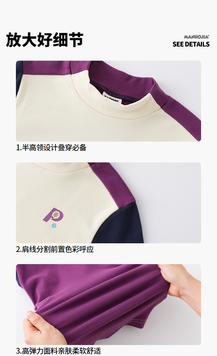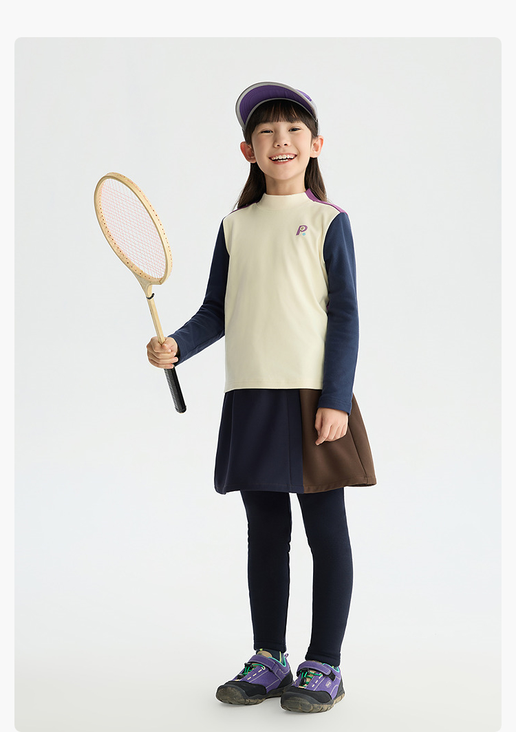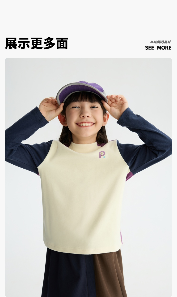 漫画家【糯糯衣】儿童T恤25秋冬男女童远红外蓄热保暖拼色打底衫