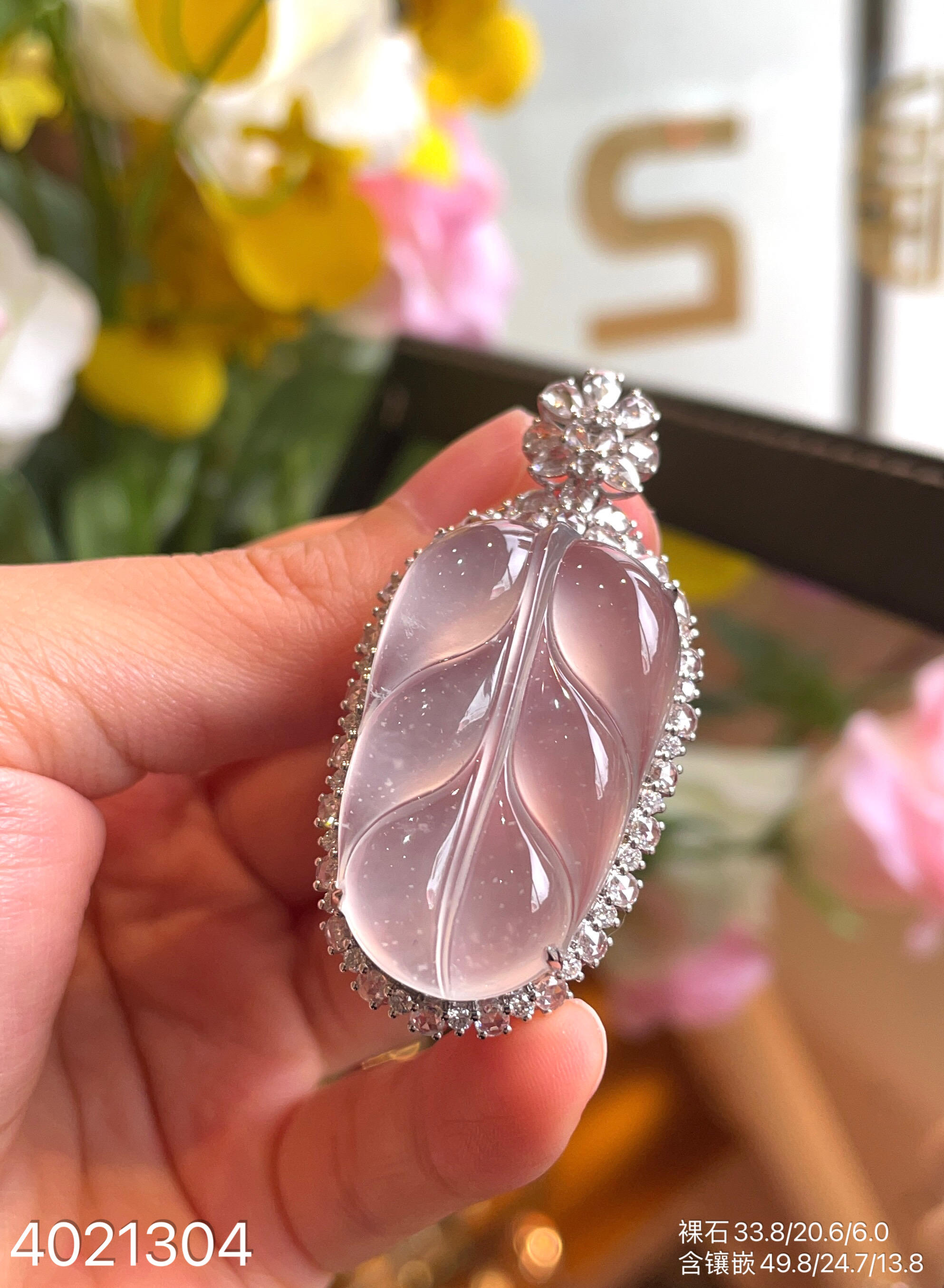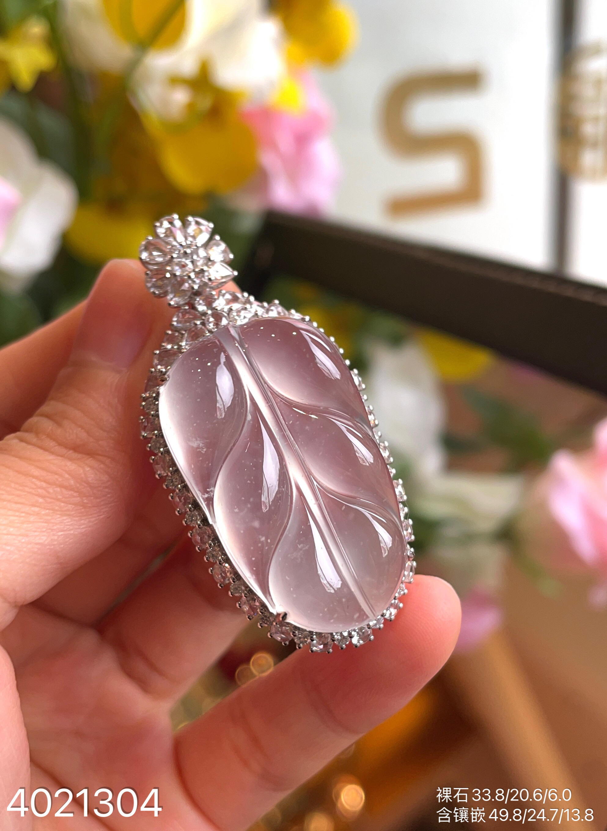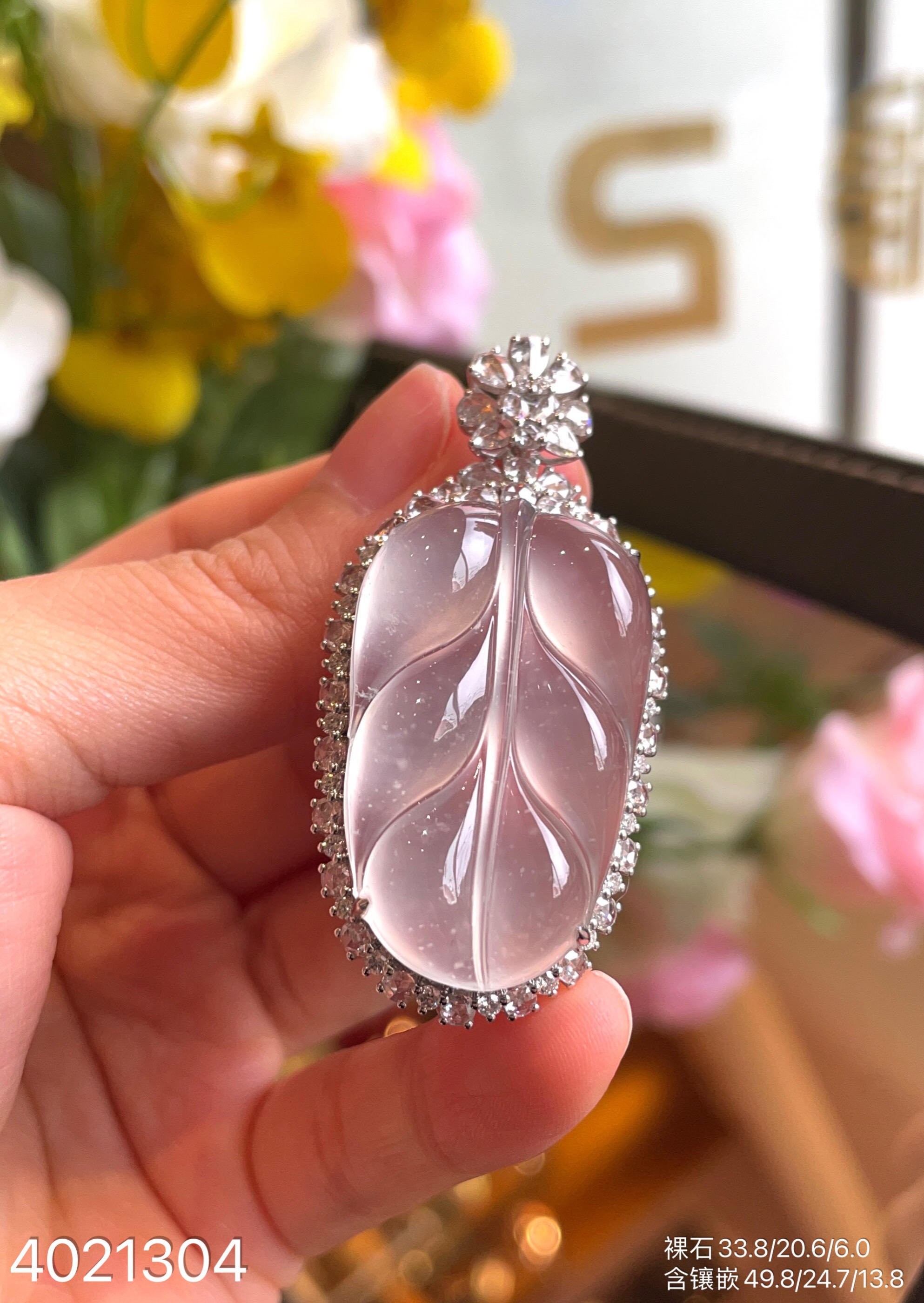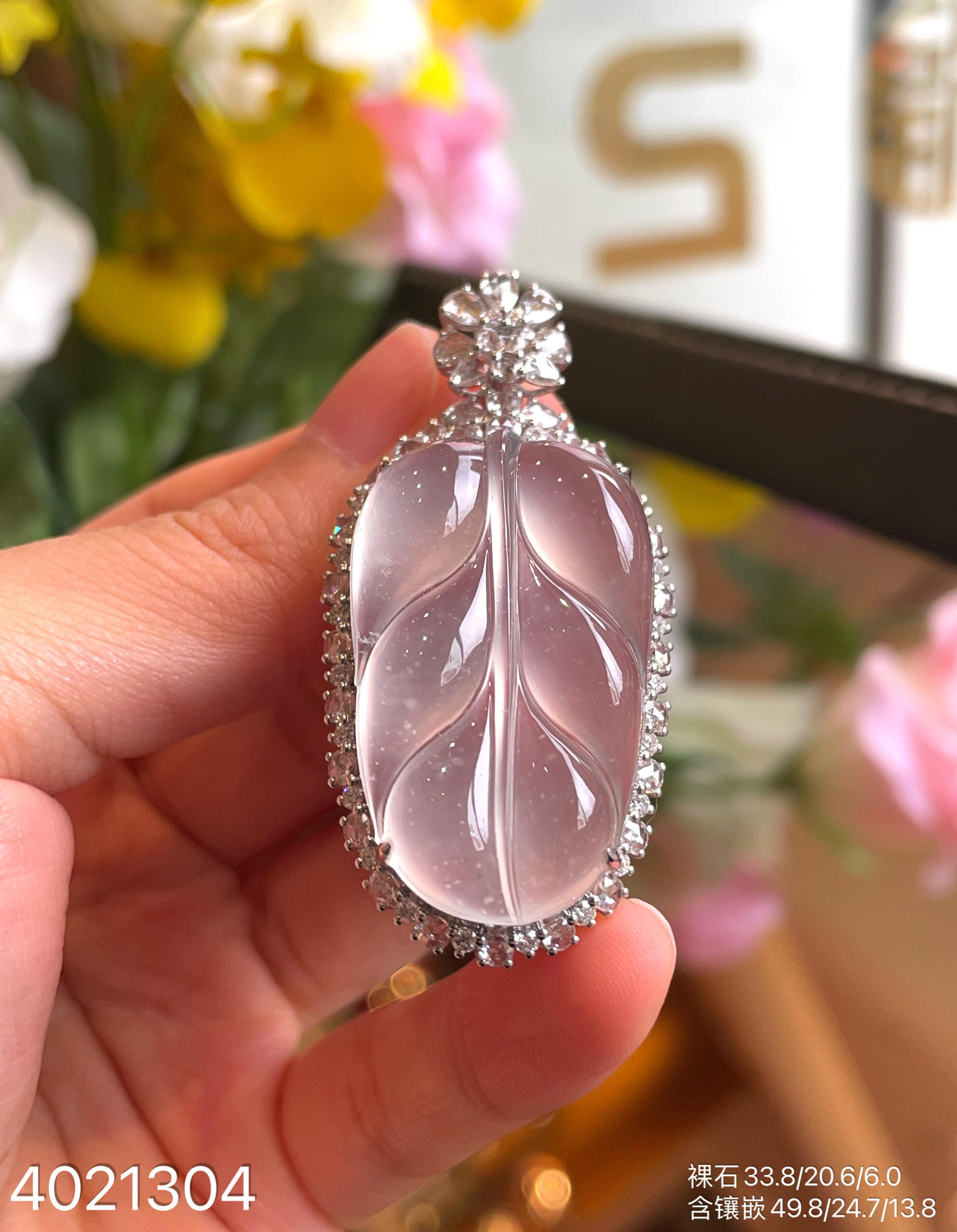 玻璃种叶子吊坠【4021304】具体价格微信咨询