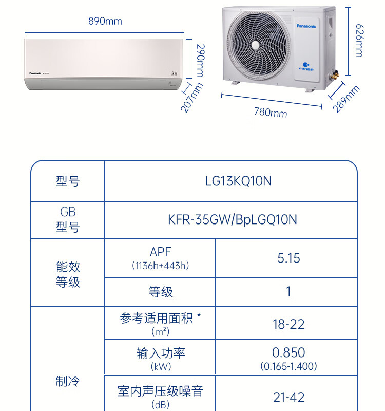 松下空调 1.5匹/大1匹 20倍纳诺怡除菌净化空调 新一级能效内部自清洁 原装压缩机 LG13KQ10N/ LG9KQ10N