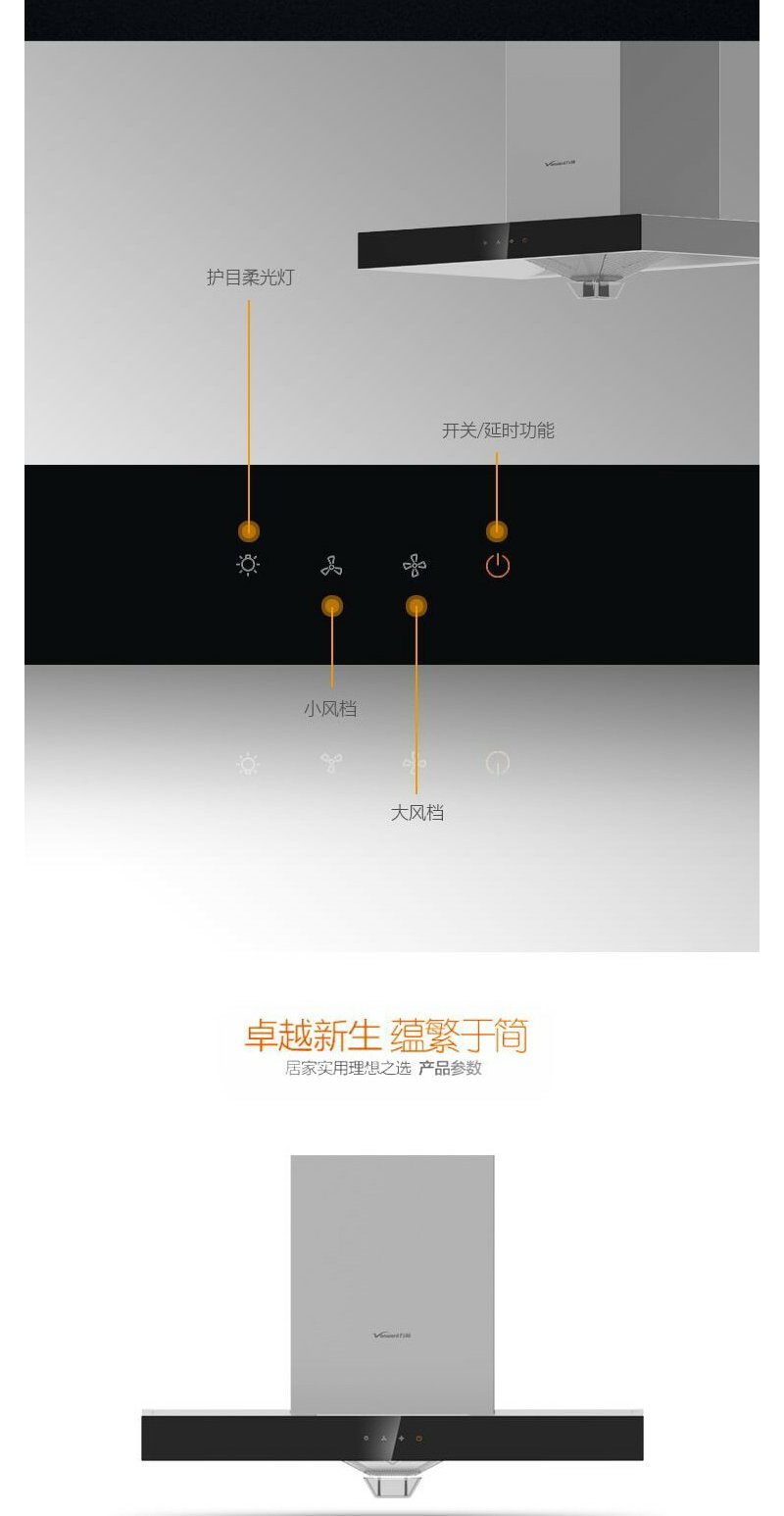 万和 CXW-200-X05H1大吸力大尺寸欧式触摸顶吸油烟机 浅灰色