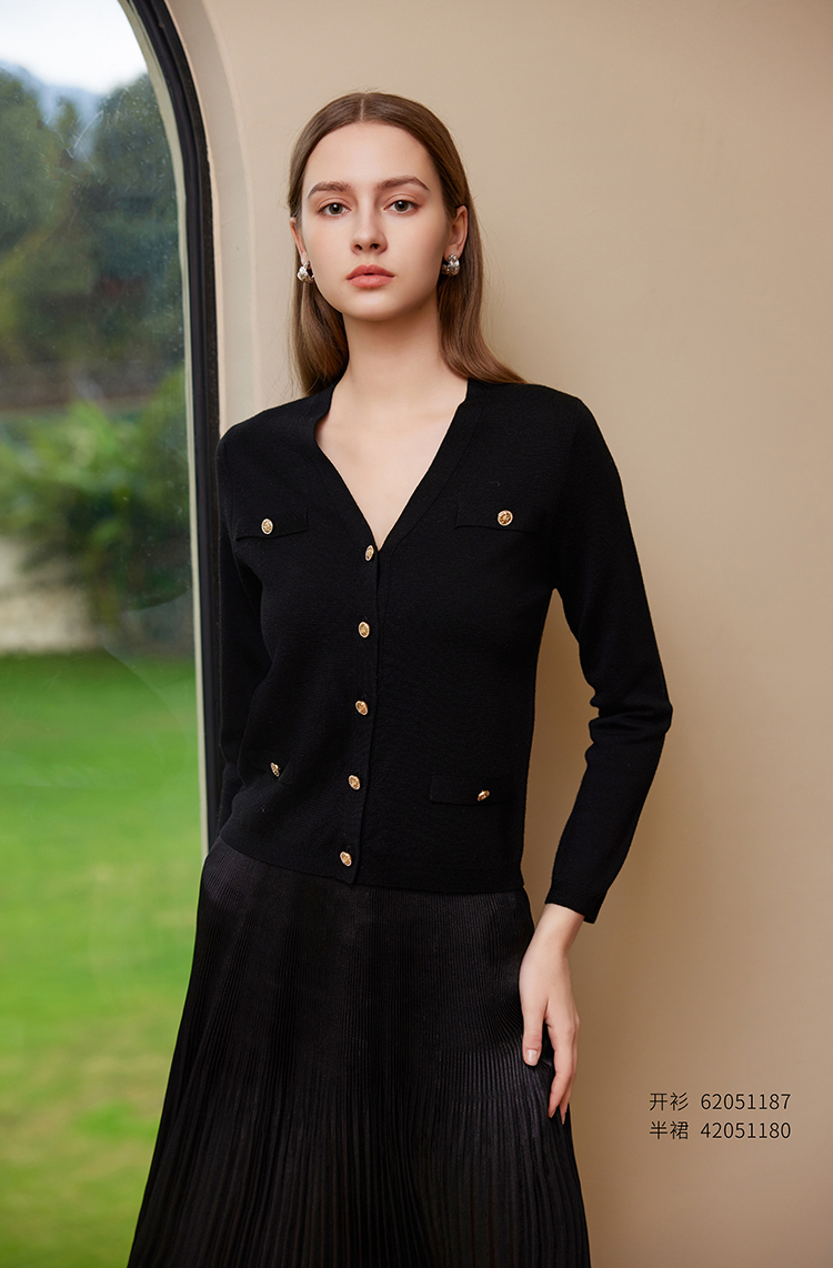 【纯羊毛针织开衫】25年春夏新品女士100%羊毛V领针织开衫小外套