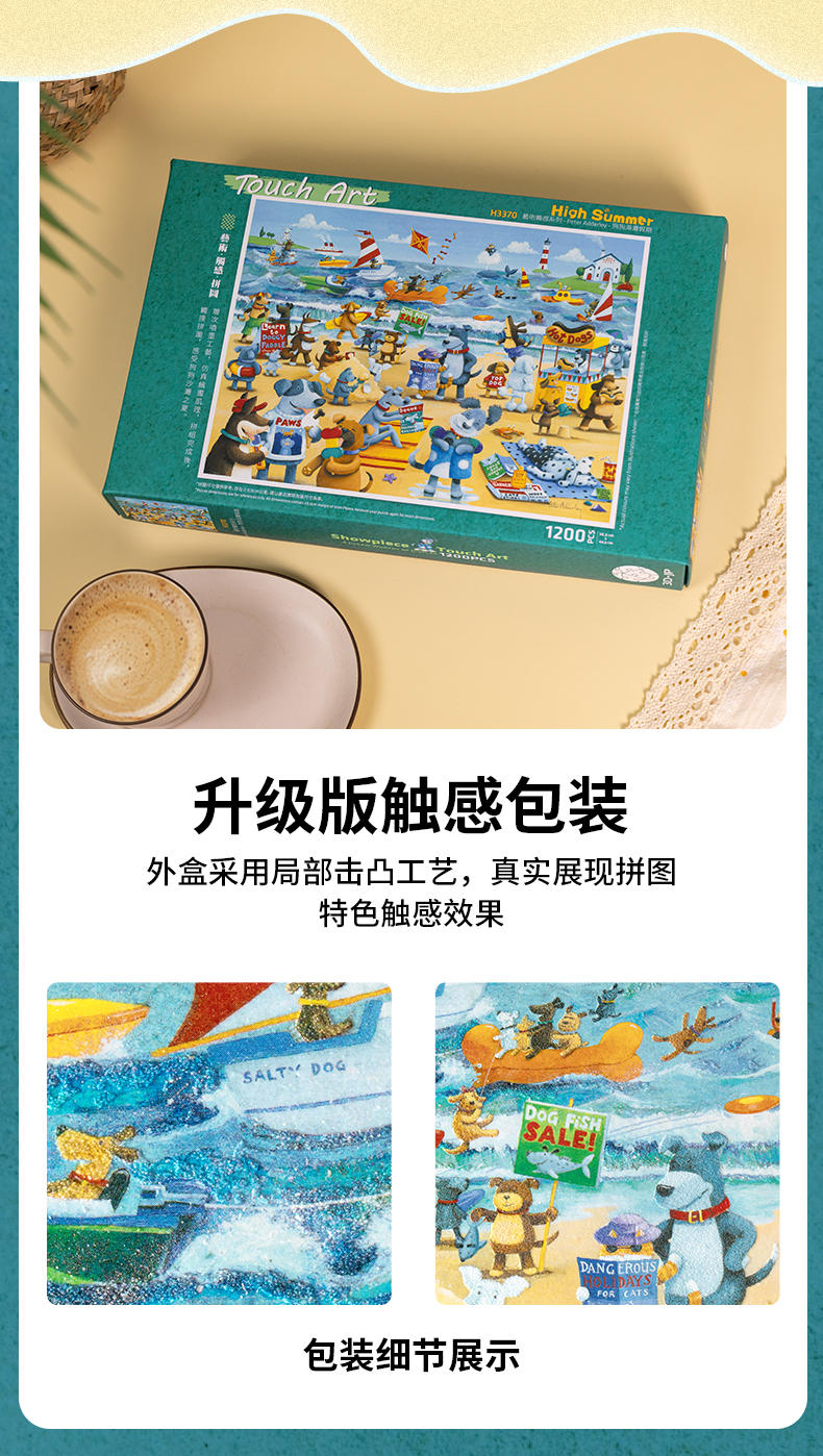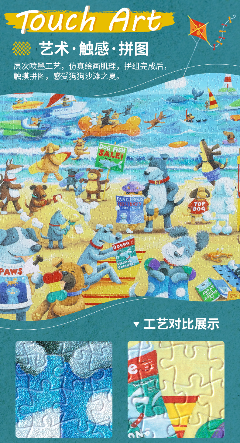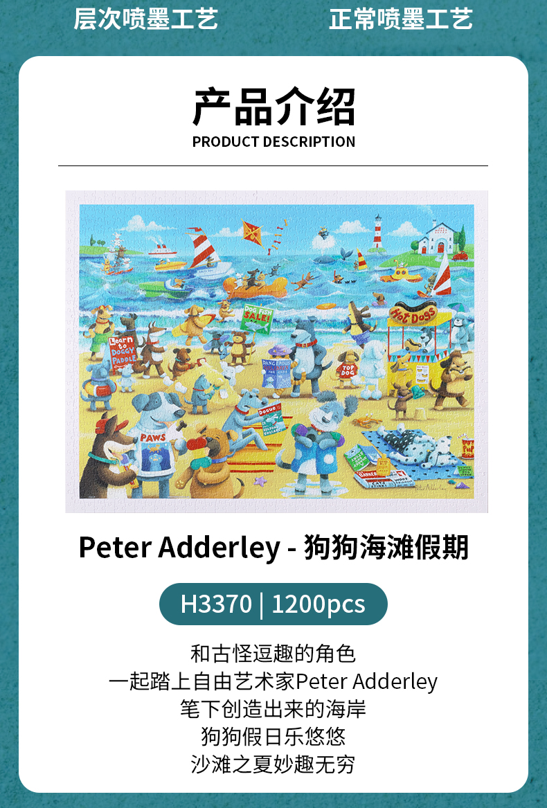 【折扣商品 不退不换】1200片 平面塑料拼圖 H3370 艺术触感系列-Peter Adderley-狗狗海滩假期