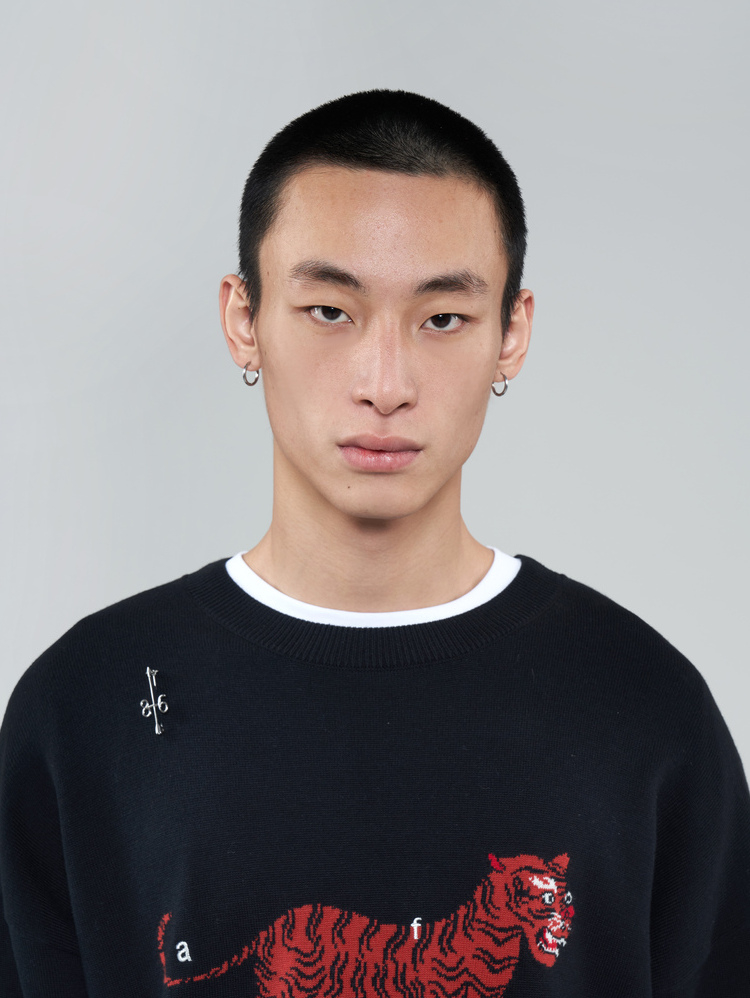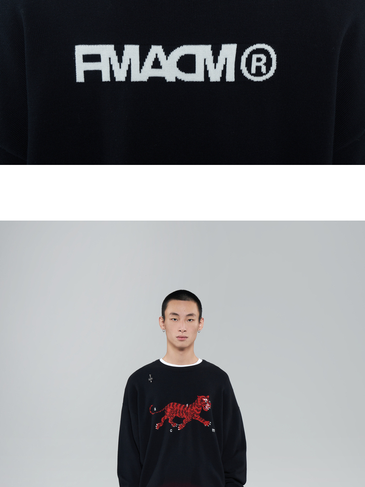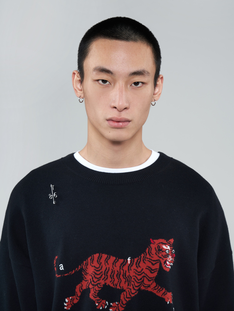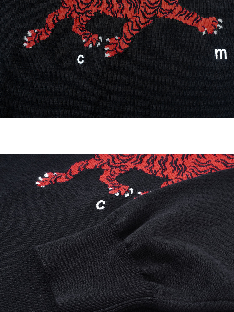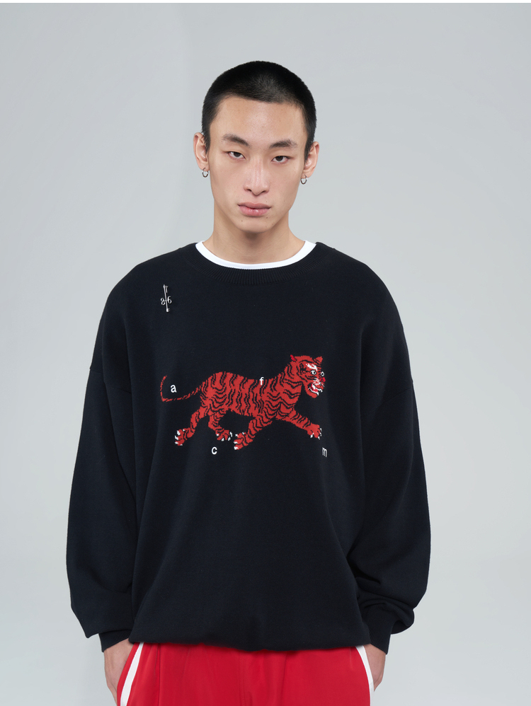 FMACM/ZZS2303/藏毯虎纹饰嵌花圆领针织毛衣