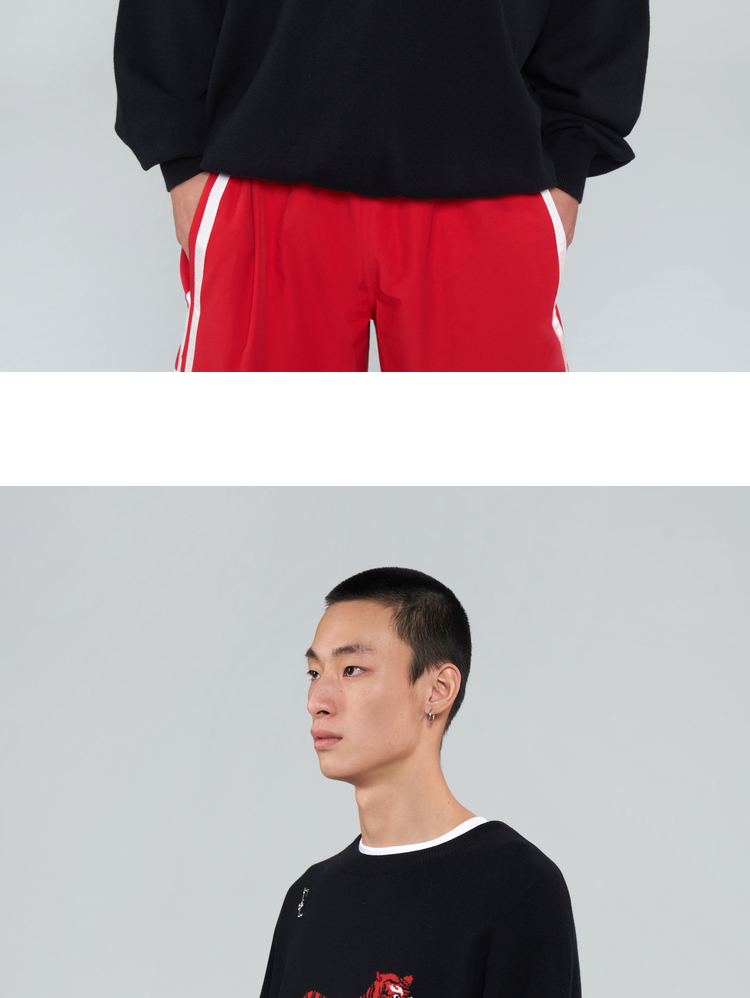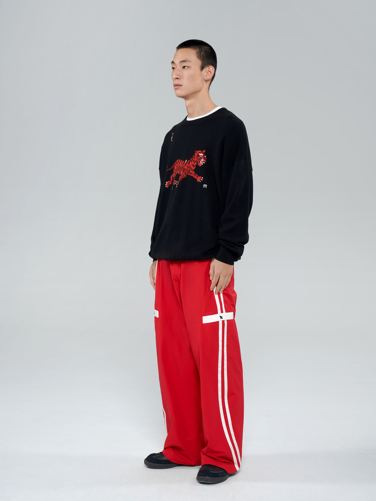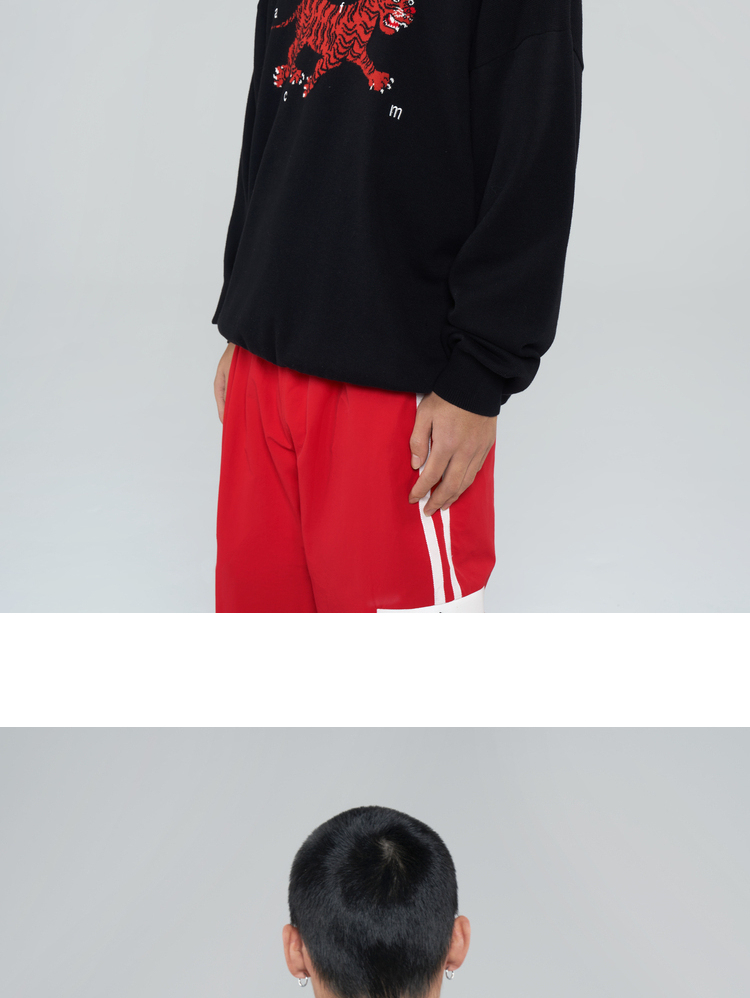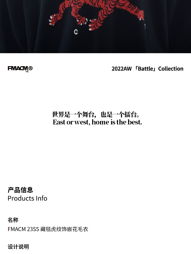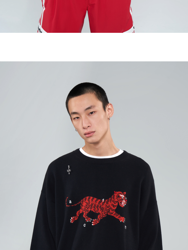 FMACM/ZZS2303/藏毯虎纹饰嵌花圆领针织毛衣