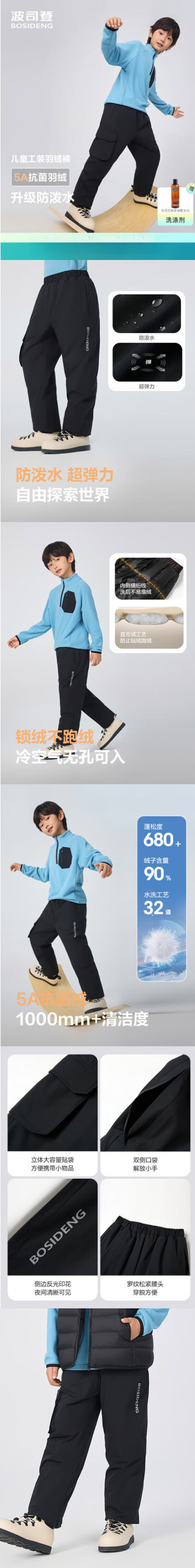波司登25秋冬新款男女童宽松休闲工装保暖儿童羽绒裤T250135580