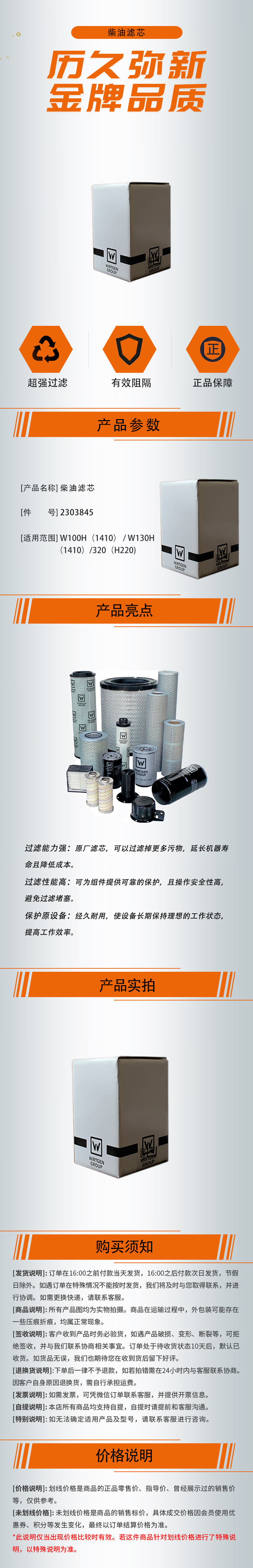 【柴油滤芯2303845】 适用于W100H(1410) / W130H(1410)/320(H220)